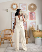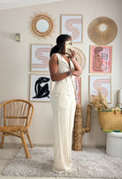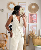 Ensemble écru top sans manches et pantalon fluide
