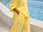 Le chemisier Nahla illumine instantanément la silhouette avec sa teinte jaune lumineuse et sa matière délicatement texturée. Sa coupe fluide, son col ouvert et sa patte de boutonnage en font une pièce facile à porter, élégante sans effort, idéale pour la belle saison.