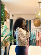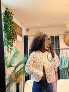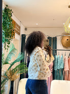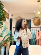 Gaspard revisite la veste légère avec un imprimé floral discret et une ligne épurée. Une pièce facile à glisser sur une blouse ou une chemise, idéale pour structurer la silhouette et accompagner la mi-saison. Pour un look de mi-saison parfait, porter la veste avec le chemise Adélia. Détails • Toile légère à imprimé floral • Boutonnage sur le devant • Encolure arrondie • Manches longues • Coupe droite légèrement ajustée