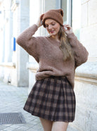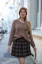 Adoptez un style intemporel et tendance avec cette jupe courte plissée à carreaux. Parfaite pour la saison automne-hiver, cette pièce apporte une touche rétro chic à vos tenues. Avec sa coupe évasée et ses plis élégants, elle sublime la silhouette tout en offrant un grand confort. Confectionnée dans un mélange de matières de qualité, cette jupe est disponible en tailles XS, S, M et L, et s’adapte à toutes les morphologies. Idéale pour un look casual avec des baskets ou élégant avec des bottines.