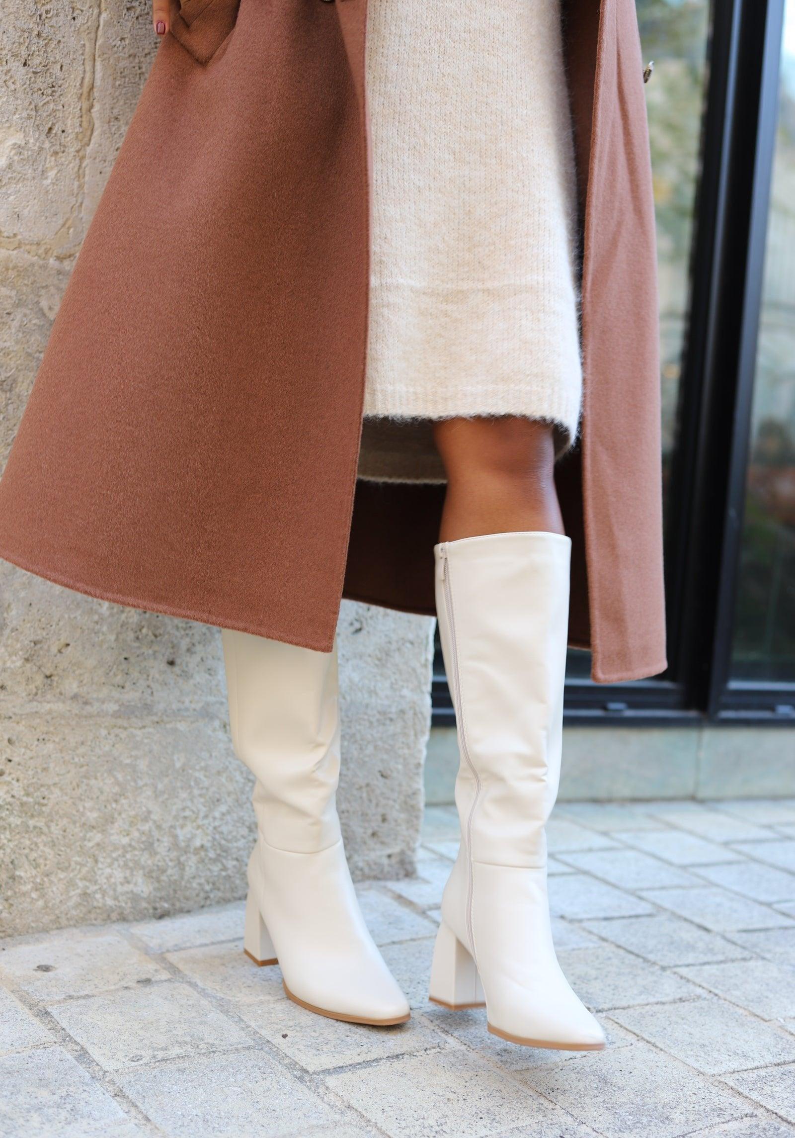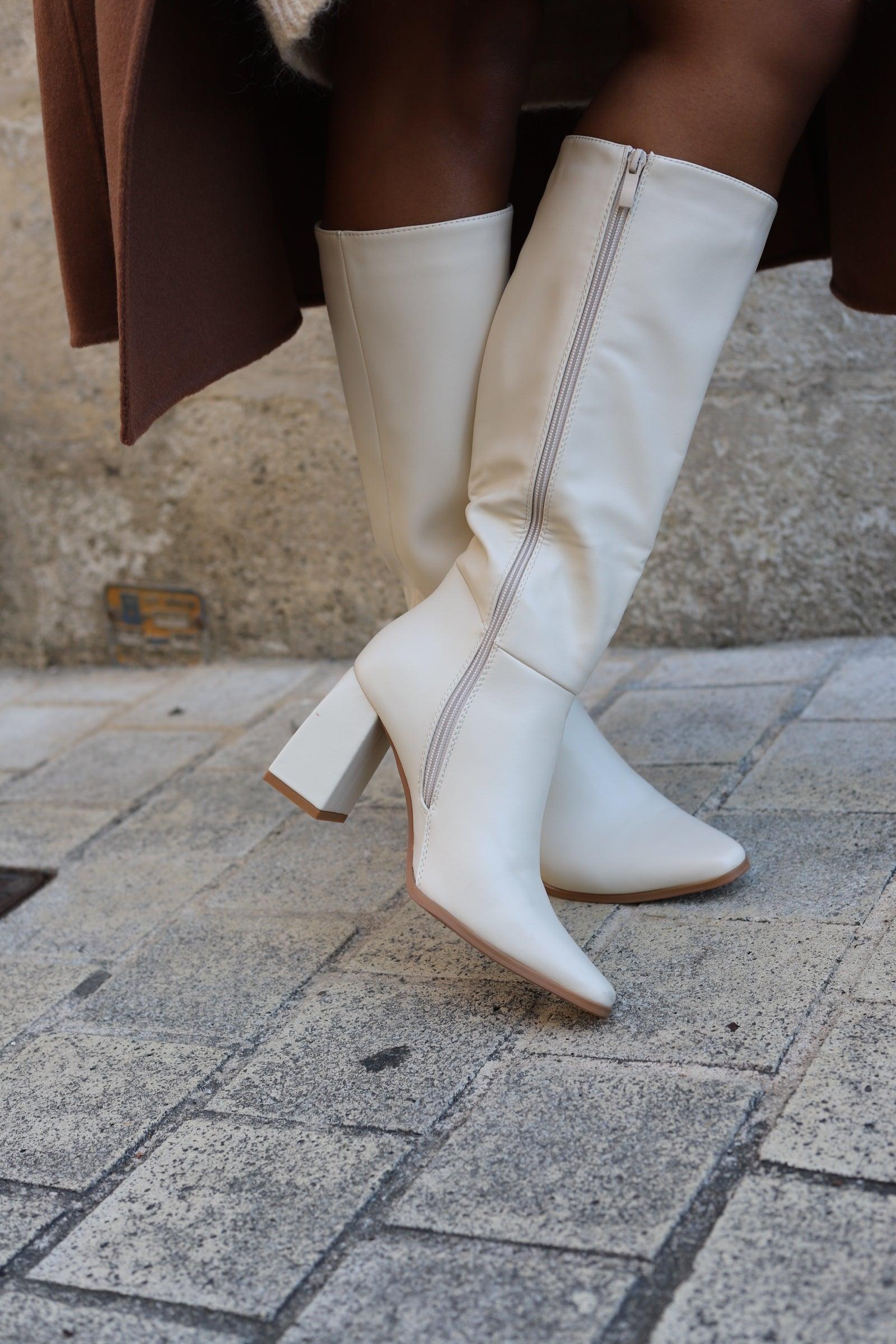 Bottes Hautes Blanches à Talons Carrés - Élégance et Confort