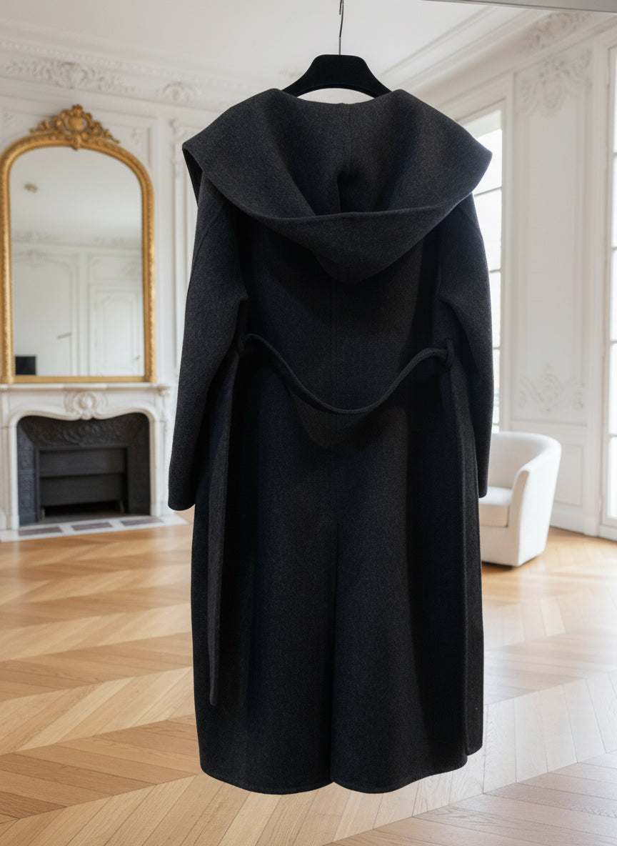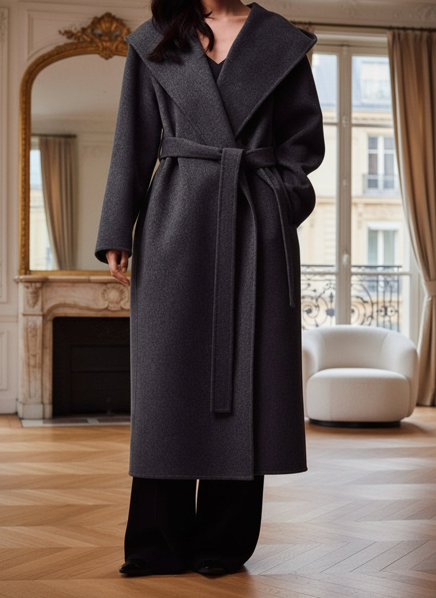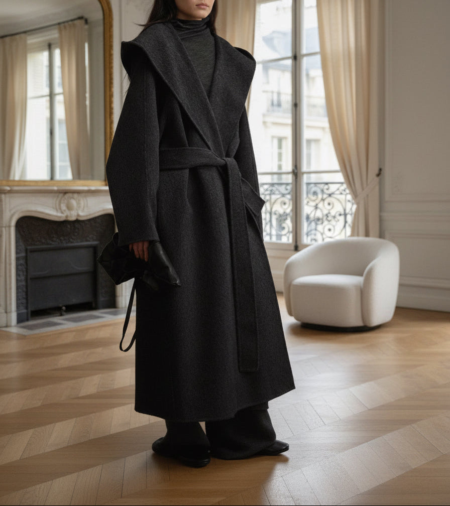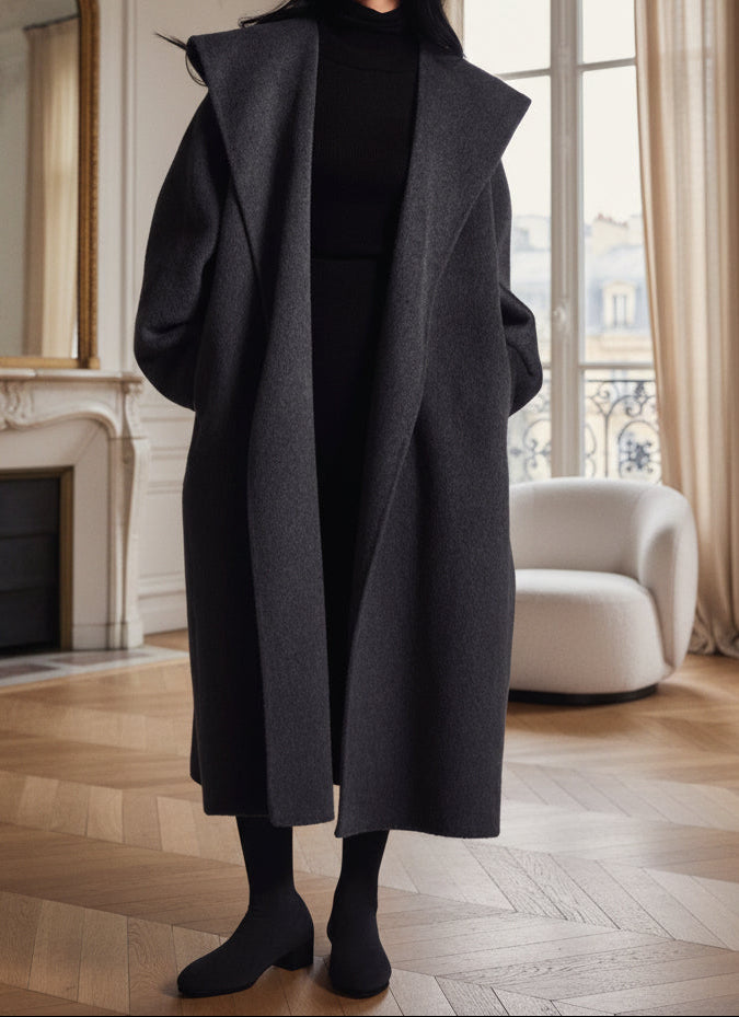 Manteau long en laine gris anthracite – Élégance oversize & minimalisme chic
