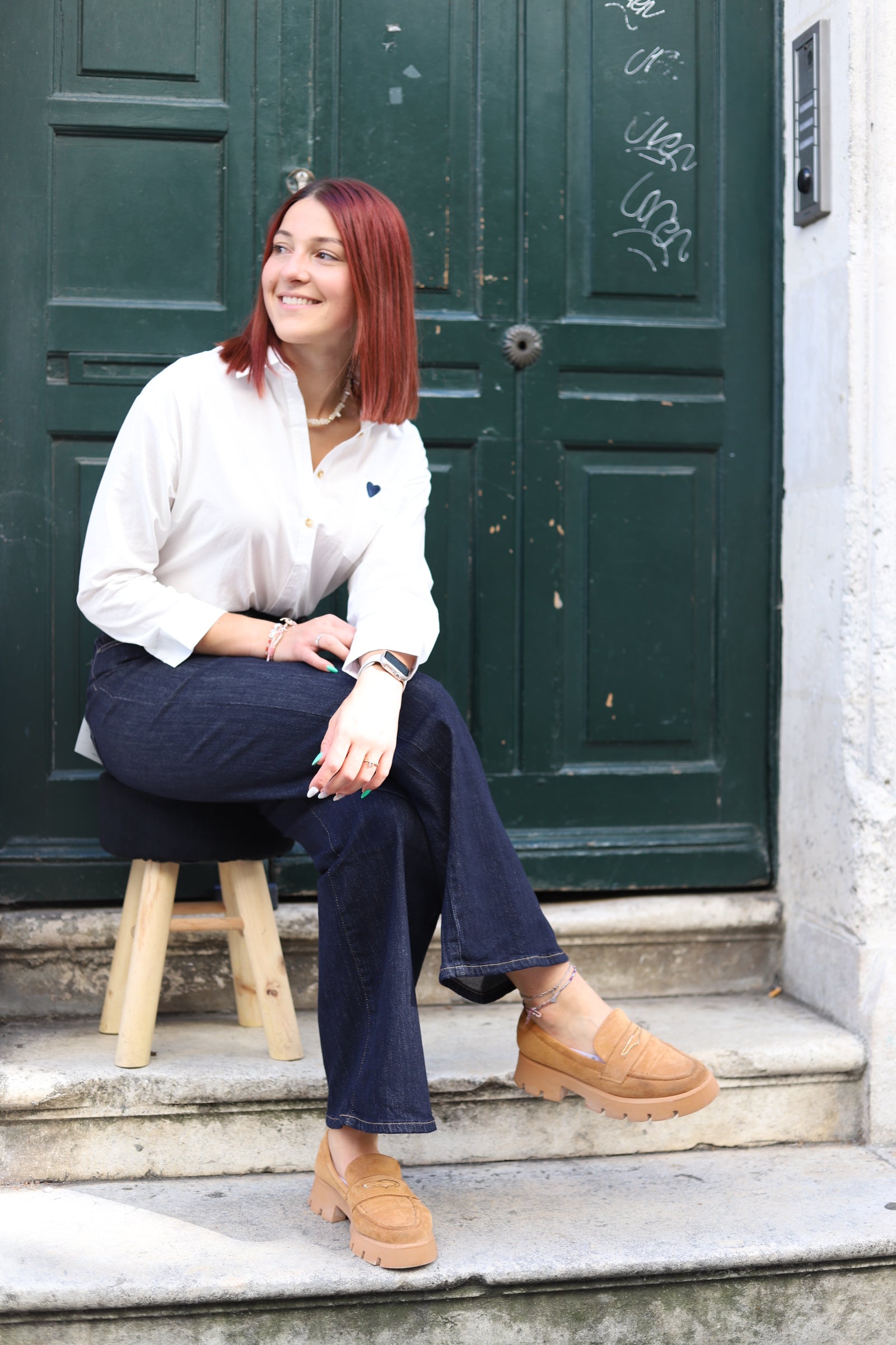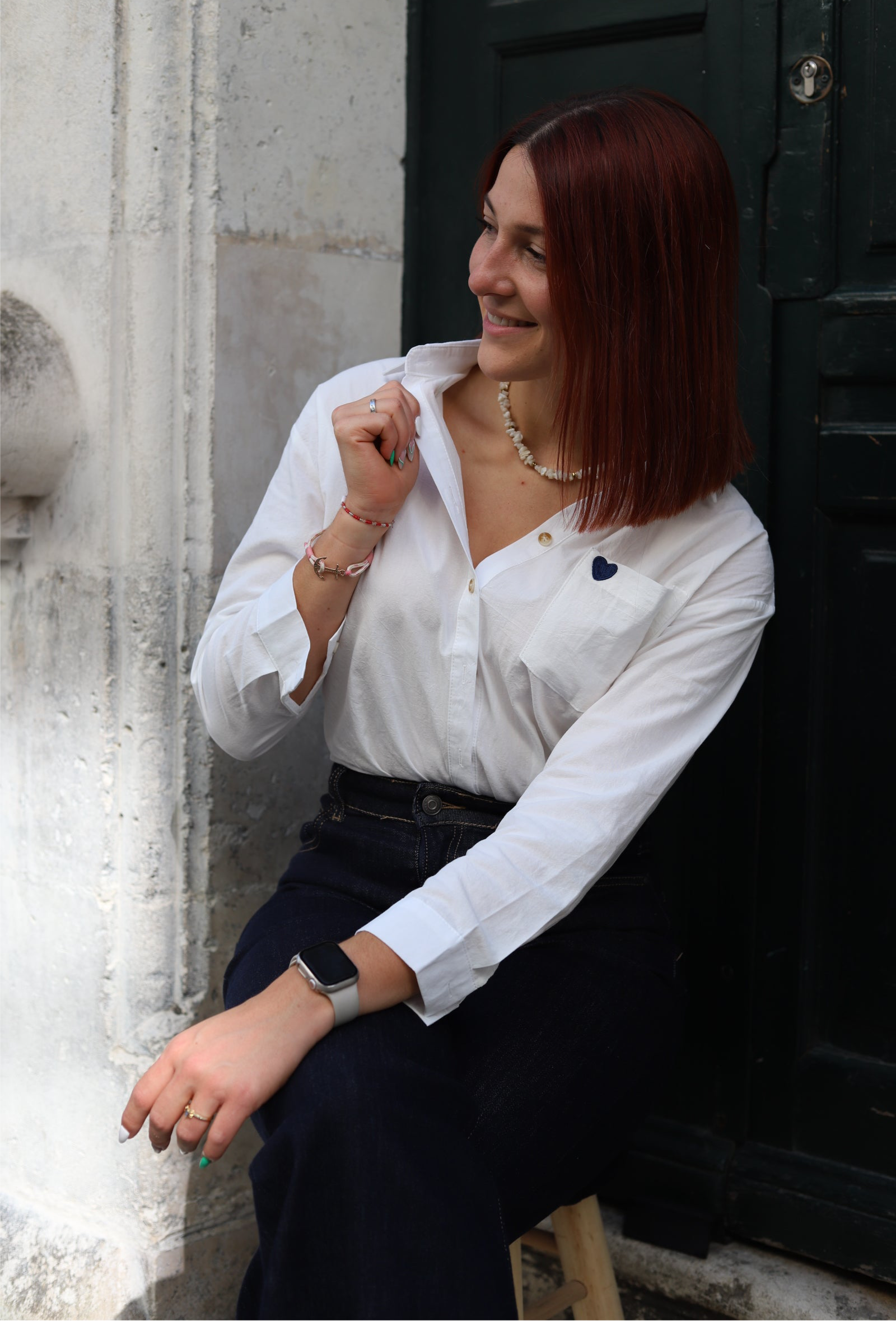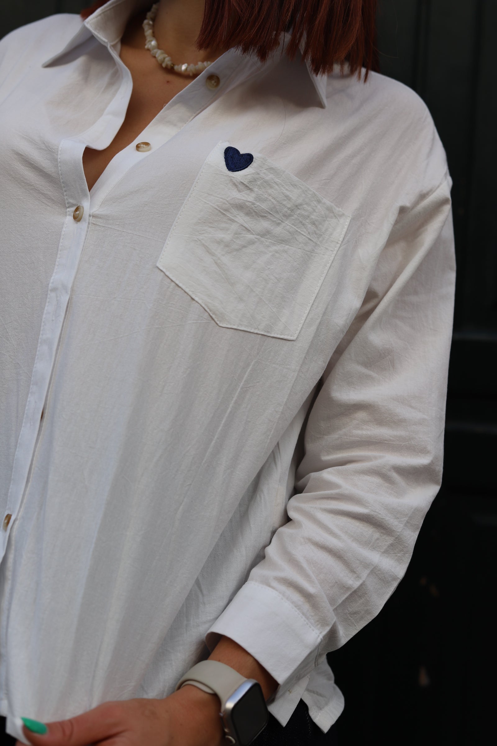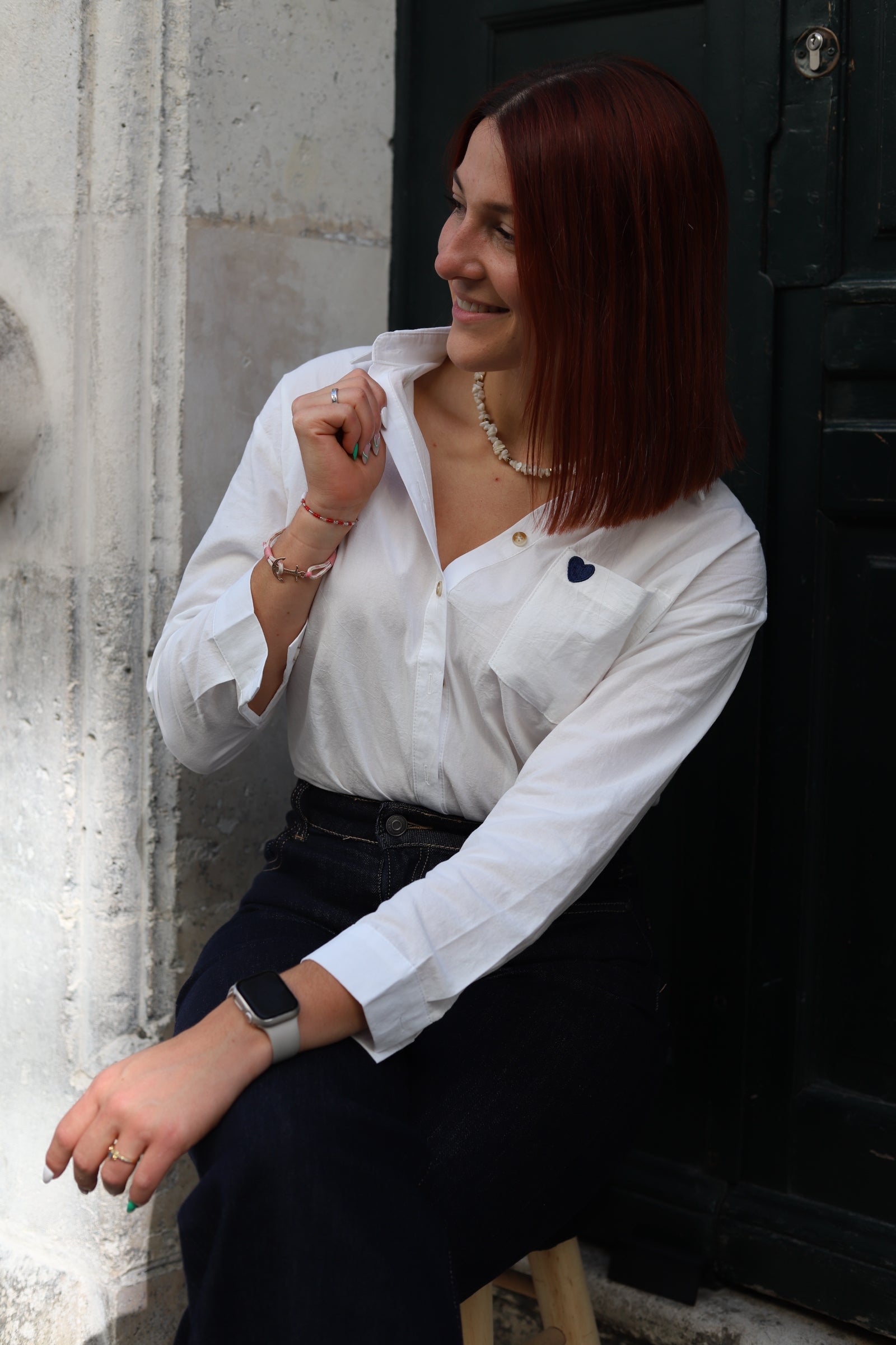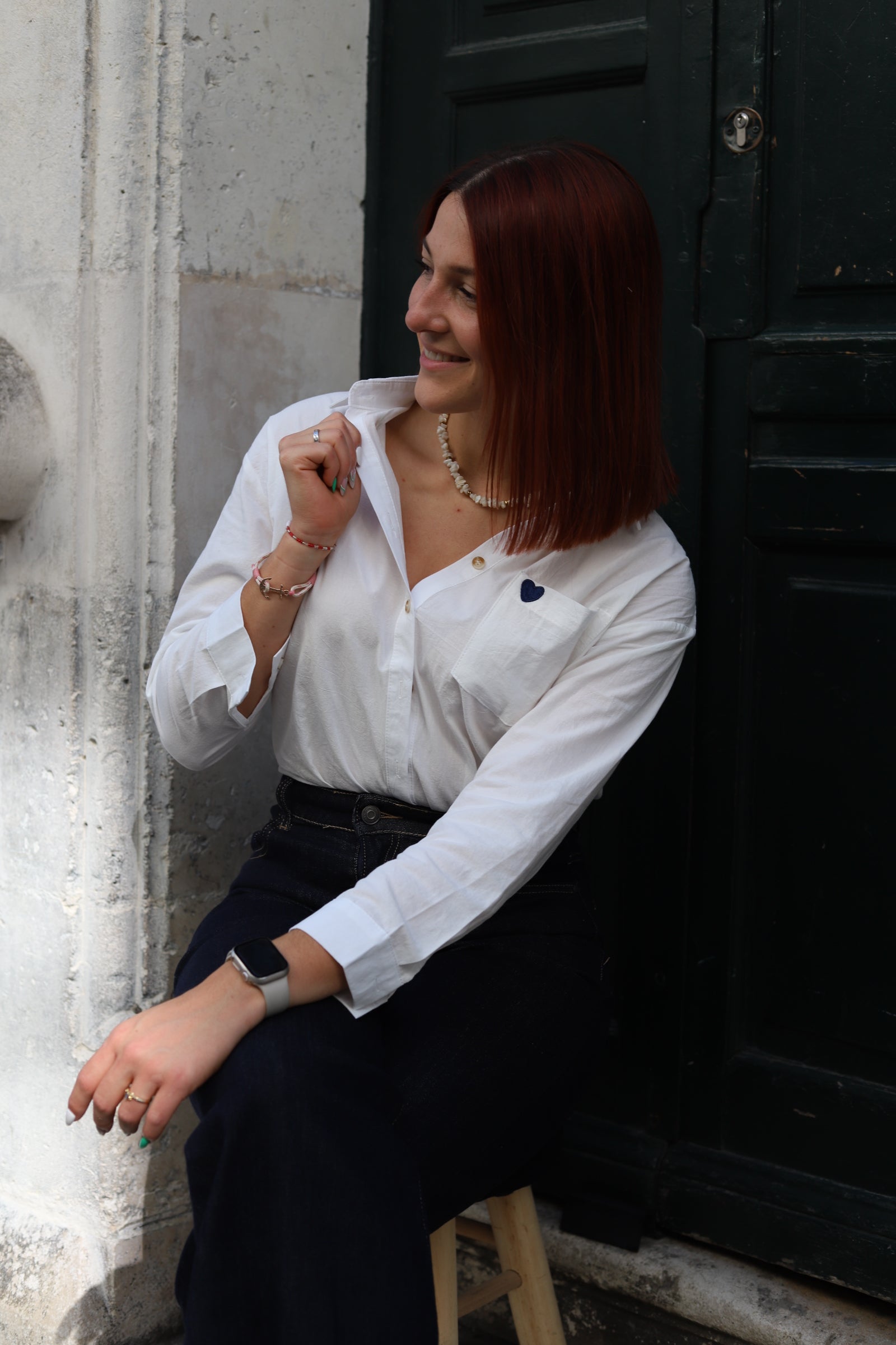 Chemise blanche femme 100 % coton – Élégance & petit cœur brodé