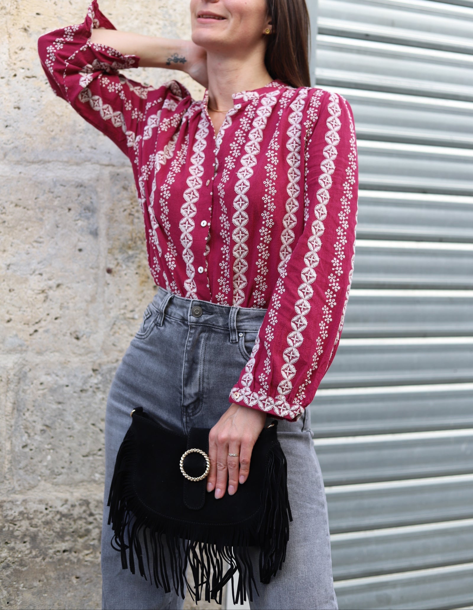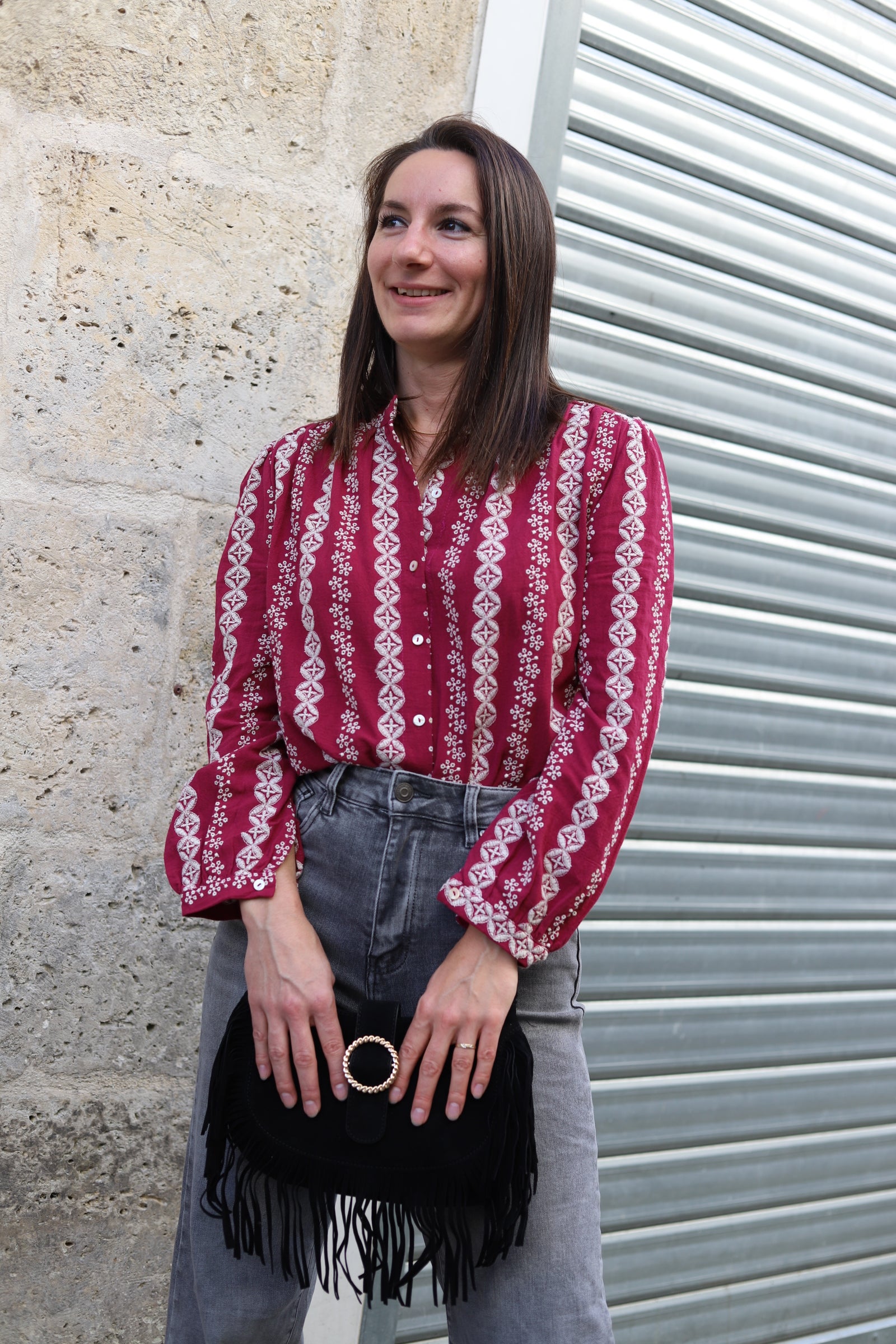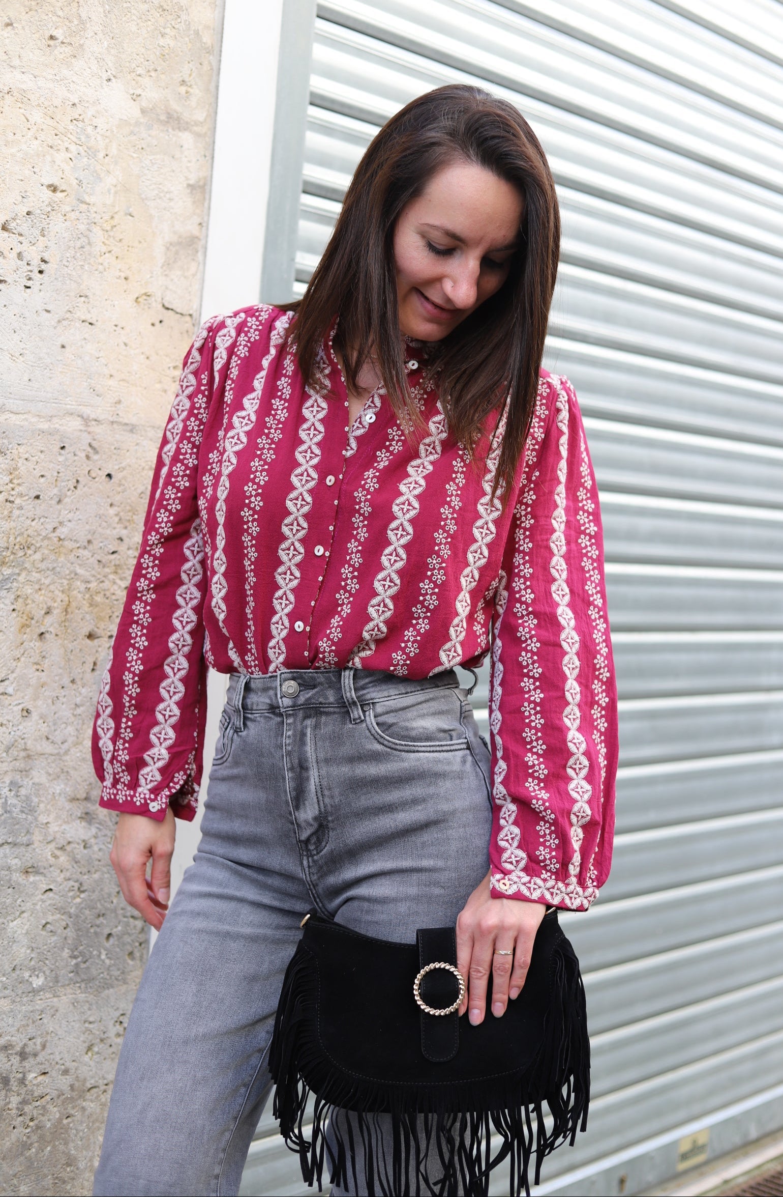 Chemise Brodée Fuchsia – L’élégance folk et colorée