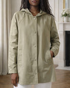 Résistante à l’eau, cette parka femme protège des intempéries légères tout en conservant une allure nette et contemporaine. Sa fermeture par boutons-pression, ses emmanchures raglan confortables et ses poches sur le devant renforcent son esprit casual chic. Une pièce fonctionnelle, légère et facile à porter, parfaite pour les journées changeantes.