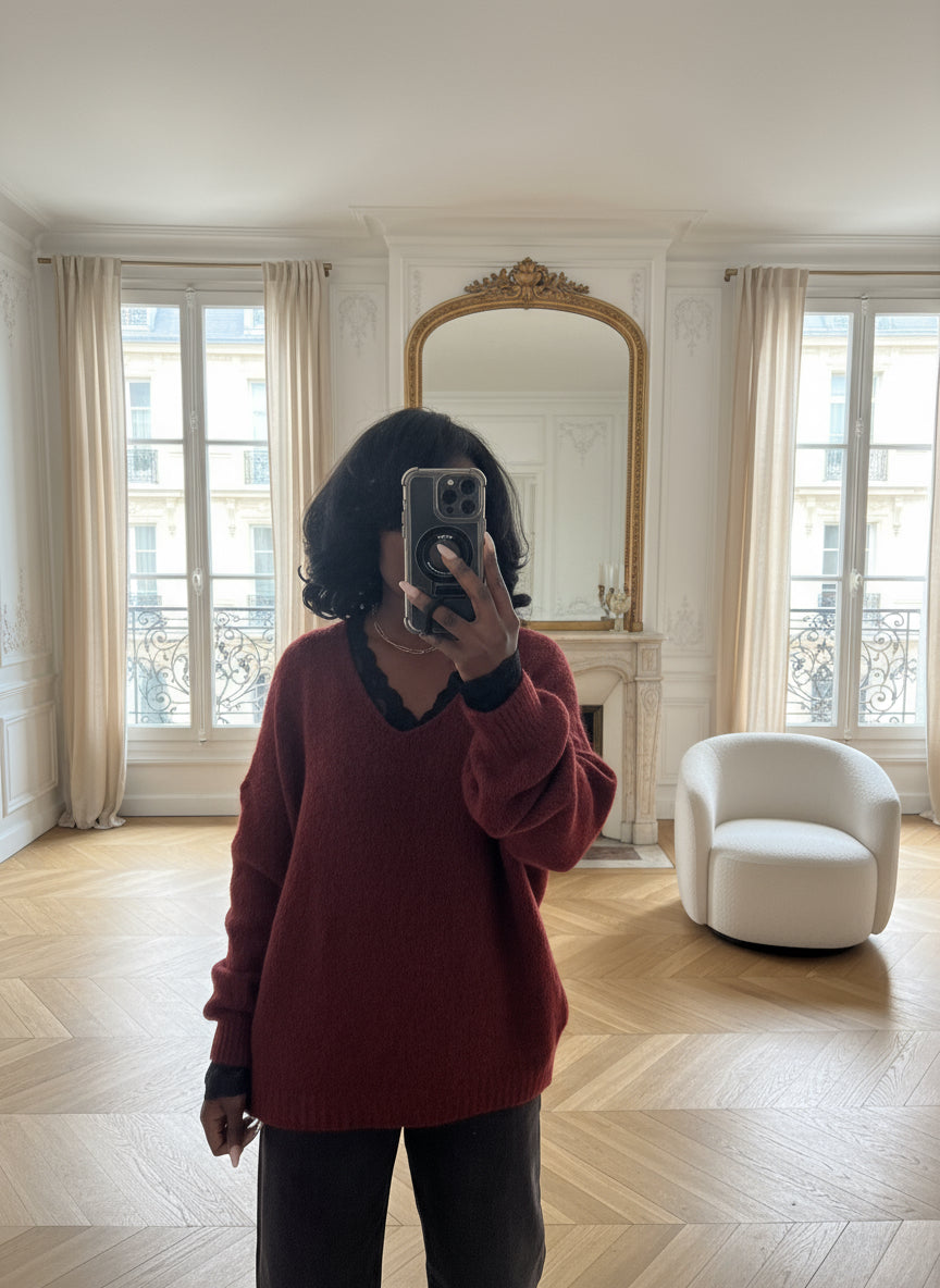 L’élégance décontractée s’invite dans votre dressing avec ce pull col V Bordeau, au toucher doux et moelleux, parfait pour les saisons fraîches. Sa coupe loose flatte toutes les silhouettes et permet une grande liberté de mouvement tout en apportant une allure tendance. Facile à porter et à assortir, ce pull sera votre allié mode en toute circonstance !