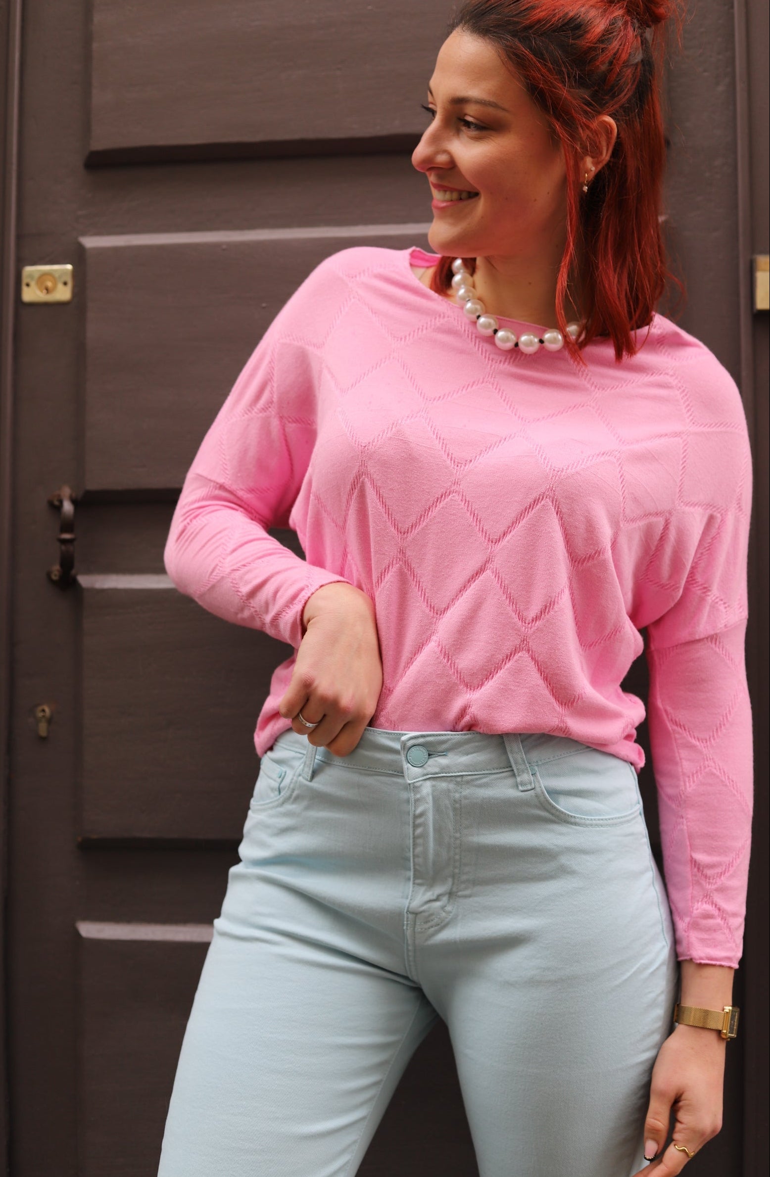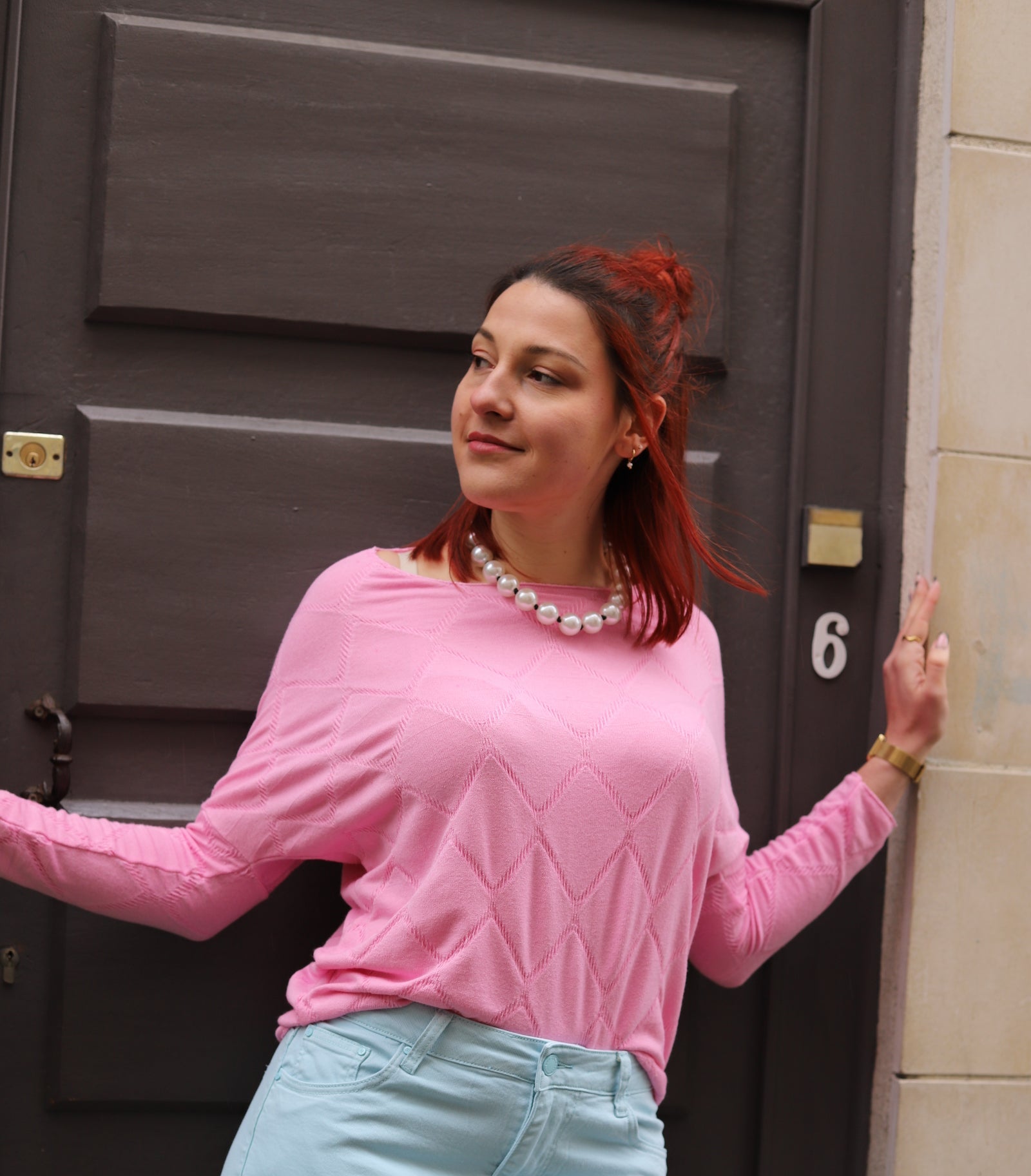 Pull texturé rose bonbon – touche lumineuse et féminine