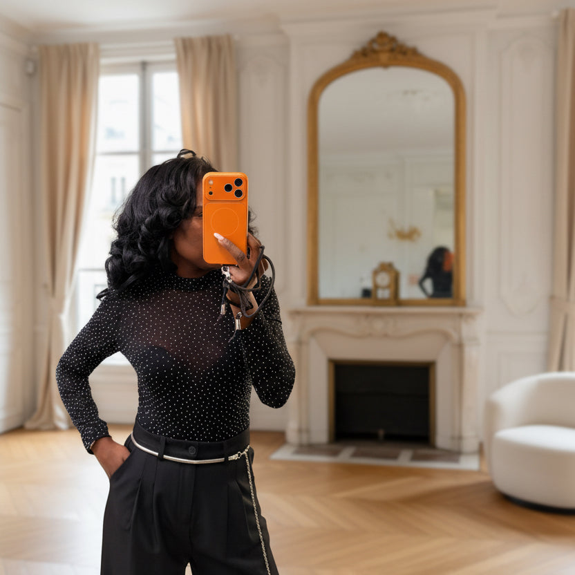 Affirmez votre féminité avec style grâce à ce body noir à manches longues, conçu pour sublimer toutes les silhouettes. Son tissu délicatement orné de micro-paillettes offre une brillance subtile et raffinée, parfaite pour les saisons automne-hiver. Avec sa coupe près du corps et son col montant, ce modèle vous assure une allure élégante et contemporaine en toute simplicité.
