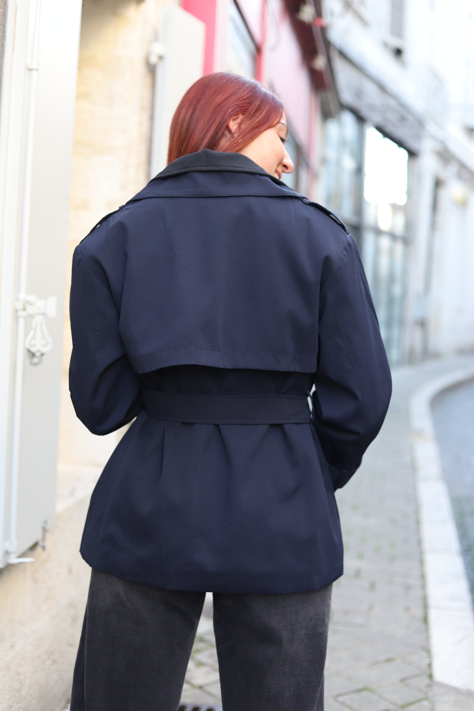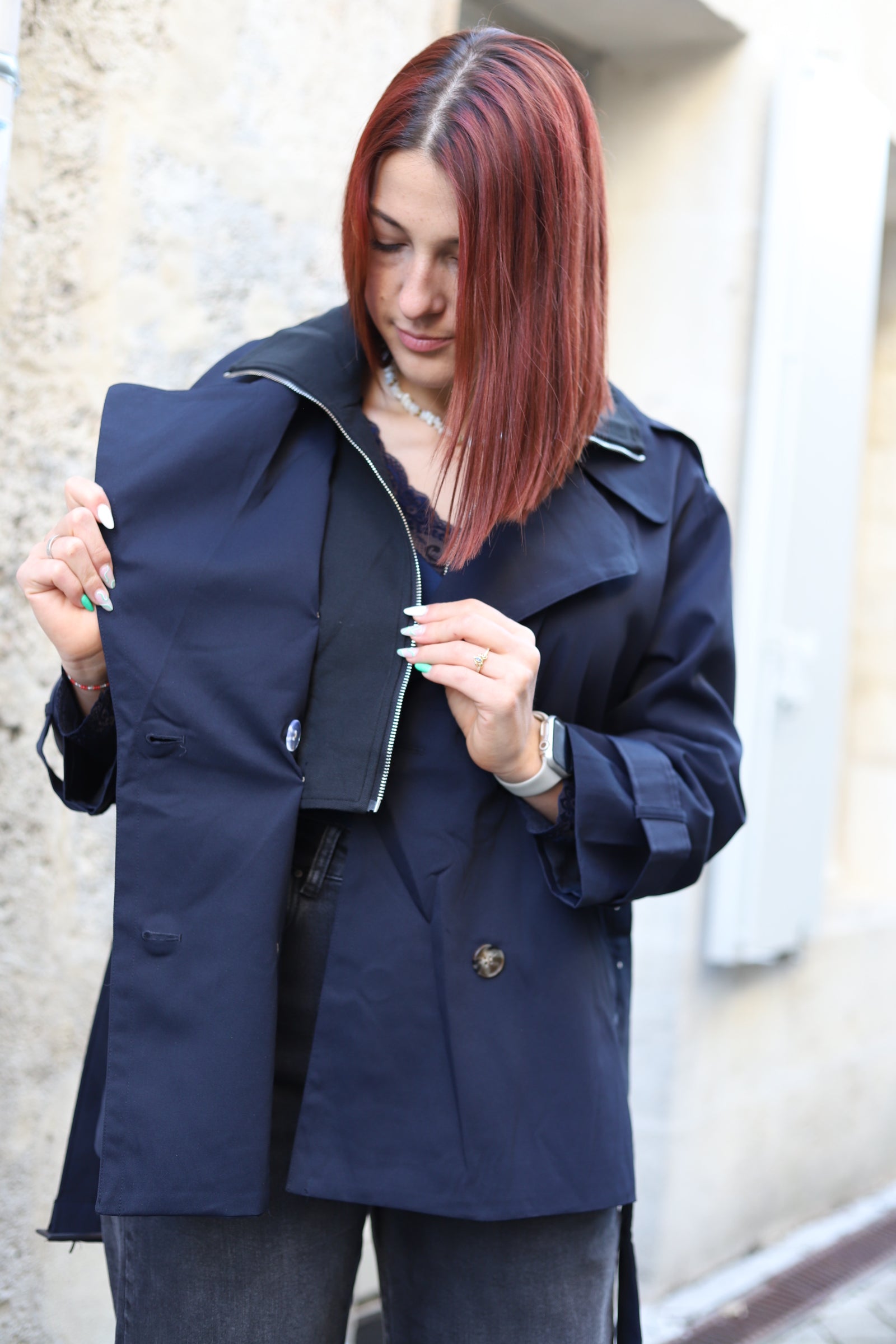Allure sophistiquée et confort moderne : ce trench court ceinturé revisite l’incontournable trench avec une touche contemporaine. Son design deux-en-un, avec un empiècement intérieur façon pull zippé contrastant, crée un effet de superposition chic. Parfait pour celles qui aiment les pièces hybrides et pratiques, sans compromis sur le style.