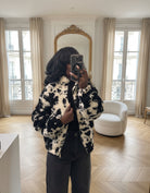Adoptez une allure aussi tendance que cosy avec cette veste polaire noire et blanche imprimé vache, parfaite pour affronter l’automne/hiver avec style. Sa texture ultra-douce façon fourrure et sa coupe oversize en font un incontournable pour un look casual cool et assumé. À associer avec un jean, un legging ou même une robe pour un contraste chic & audacieux.