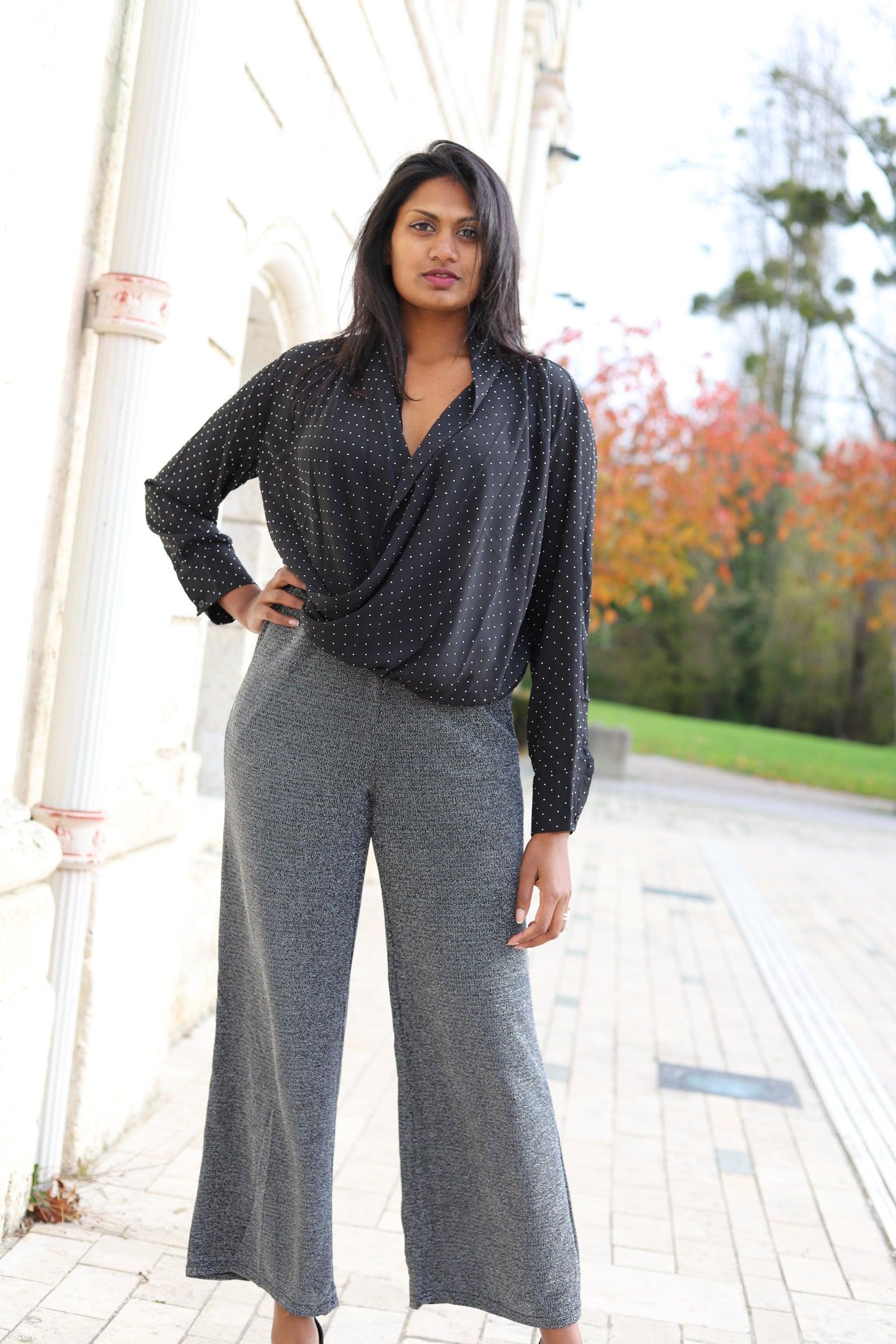 Conçu pour les femmes modernes, ce pantalon associe confort et élégance avec des détails scintillants.