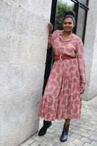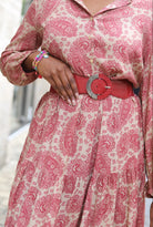 Adoptez un style bohème chic et romantique avec cette robe chemise longue rose à l’imprimé cachemire. Sa coupe évasée, ses fronces délicates et son tissu délavé ultra doux lui donnent un tomber fluide et féminin, parfait pour les saisons automne/hiver. Une pièce flatteuse, confortable, et pleine de charme.