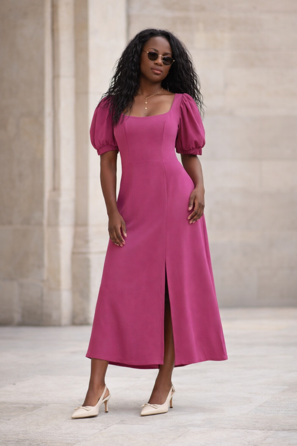 Cette robe grande taille rose se porte facilement pour une cérémonie, un dîner d’été, une sortie élégante ou une occasion spéciale en journée. Avec des sandales à talon, des mules fines ou quelques bijoux dorés, elle compose une silhouette féminine, moderne et raffinée.