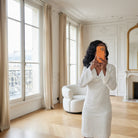 Brillez de mille feux avec cette robe de soirée glamour qui allie élégance et audace ! Cette pièce maîtresse argentée sublimée de sequins vous assure une allure inoubliable lors de toutes vos soirées festives. Avec son col drapé sensuel et ses manches longues évasées, elle épouse délicatement la silhouette tout en offrant un confort optimal. Idéale pour les grandes occasions, cette robe incarne la féminité et l’élégance moderne.