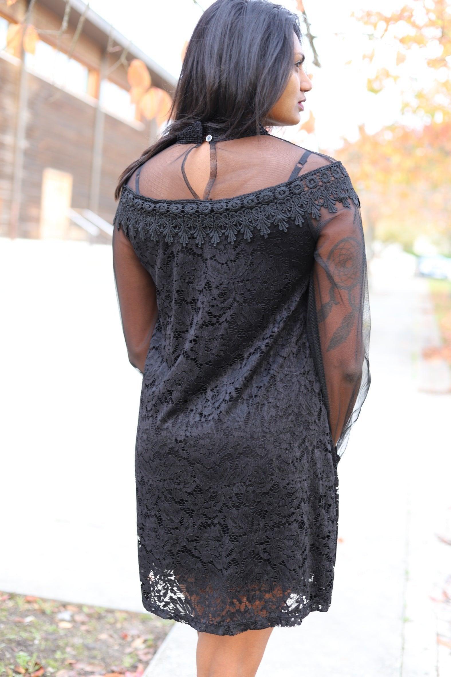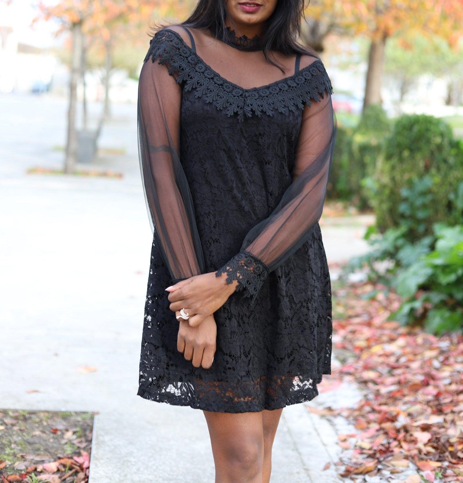 Laissez-vous séduire par cette robe courte en dentelle noire, un incontournable de l’élégance intemporelle. Idéale pour les occasions spéciales ou pour un look sophistiqué au quotidien, cette robe est ornée de délicates broderies et dotée de manches longues transparentes en tulle pour un effet léger et aérien. Sa coupe flatteuse et sa taille unique (36 à 42) en font un choix parfait pour sublimer toutes les silhouettes. Une pièce chic et féminine à ajouter sans hésiter à votre garde-robe.