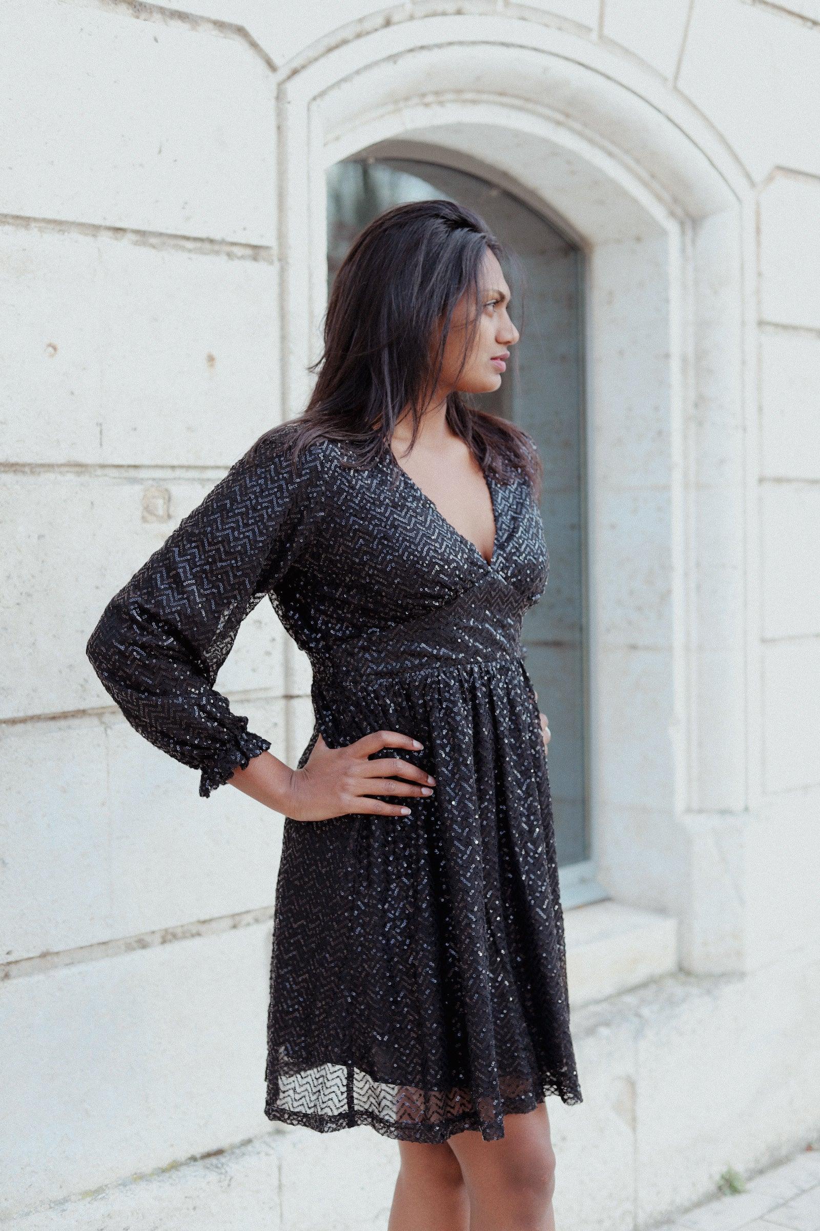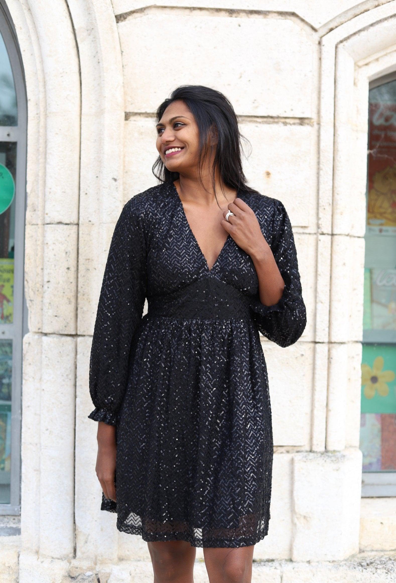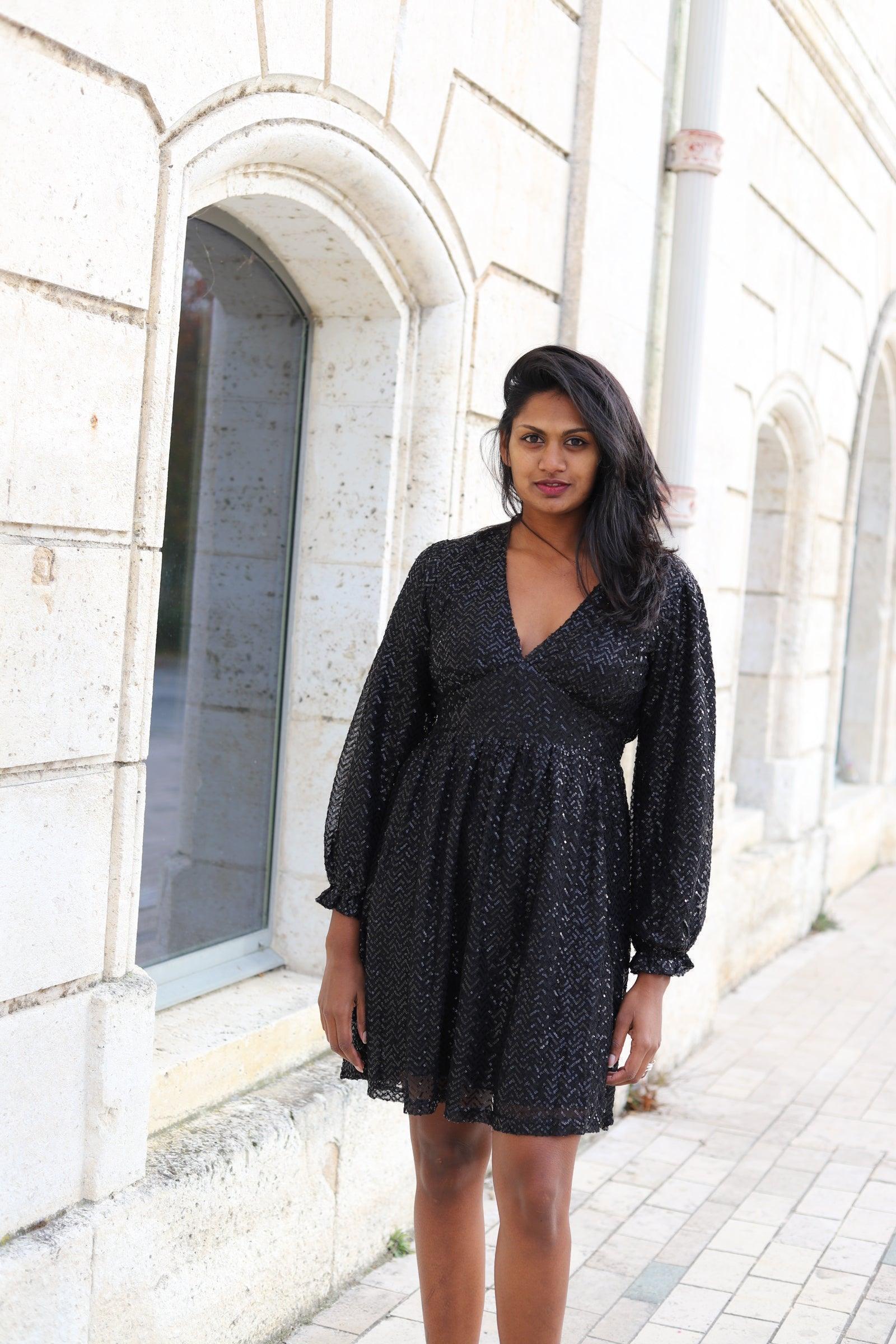 Laissez-vous séduire par cette robe noire élégante, parfaite pour ajouter une touche de glamour à votre garde-robe. Avec ses manches longues et sa texture subtilement brillante, elle incarne l’équilibre parfait entre style chic et confort. Son design flatteur met en valeur la silhouette tout en offrant une liberté de mouvement optimale. Idéale pour une soirée, un événement spécial ou une occasion professionnelle, cette robe saura vous accompagner en beauté.