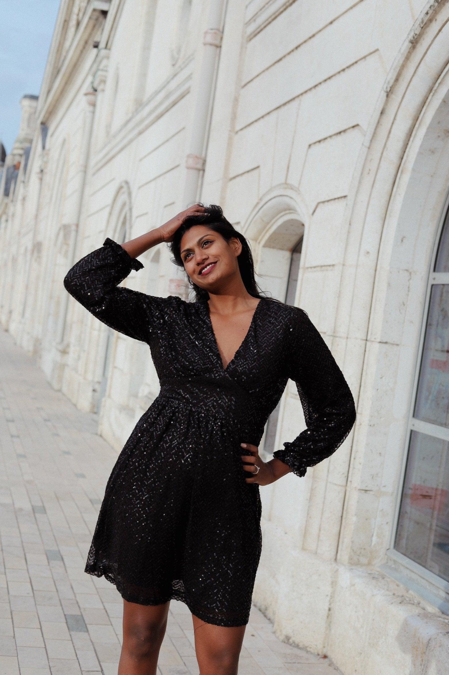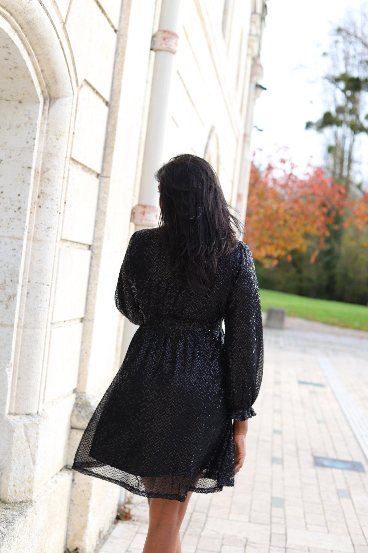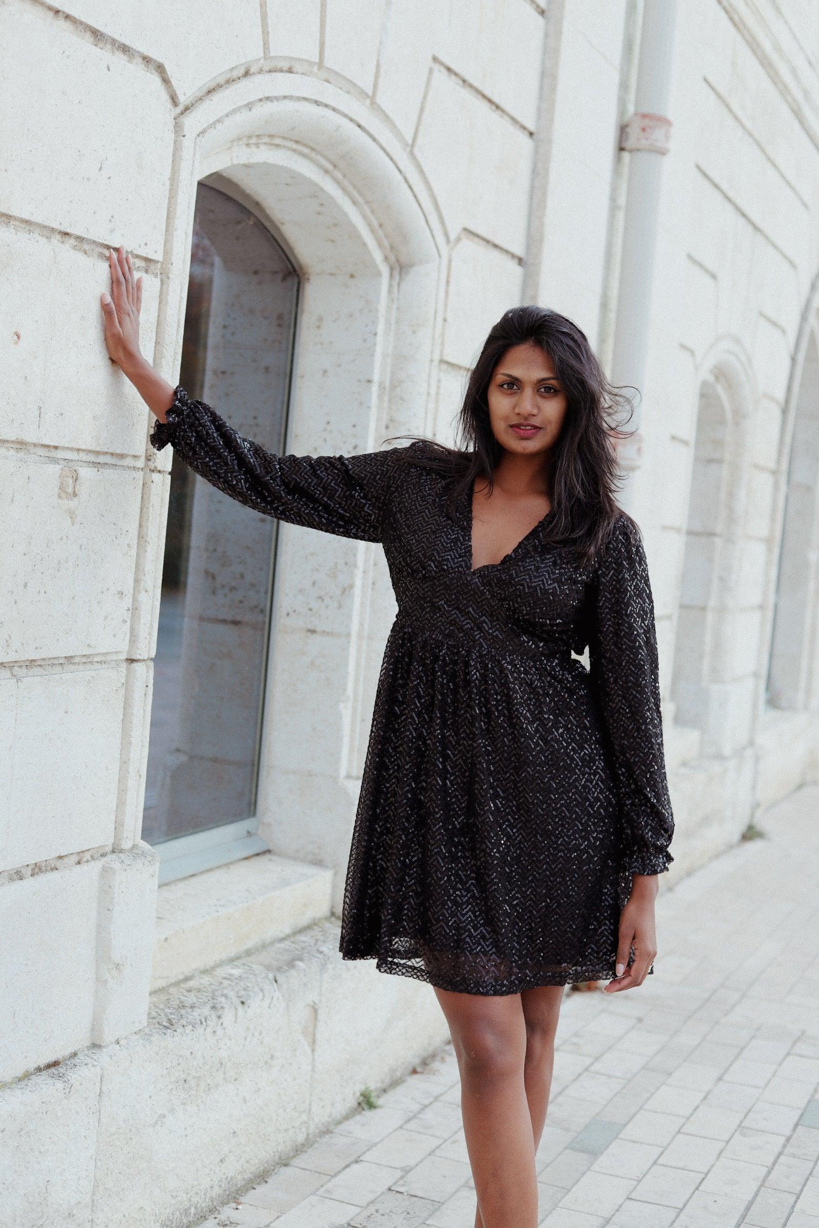 Laissez-vous séduire par cette robe noire élégante, parfaite pour ajouter une touche de glamour à votre garde-robe. Avec ses manches longues et sa texture subtilement brillante, elle incarne l’équilibre parfait entre style chic et confort. Son design flatteur met en valeur la silhouette tout en offrant une liberté de mouvement optimale. Idéale pour une soirée, un événement spécial ou une occasion professionnelle, cette robe saura vous accompagner en beauté.