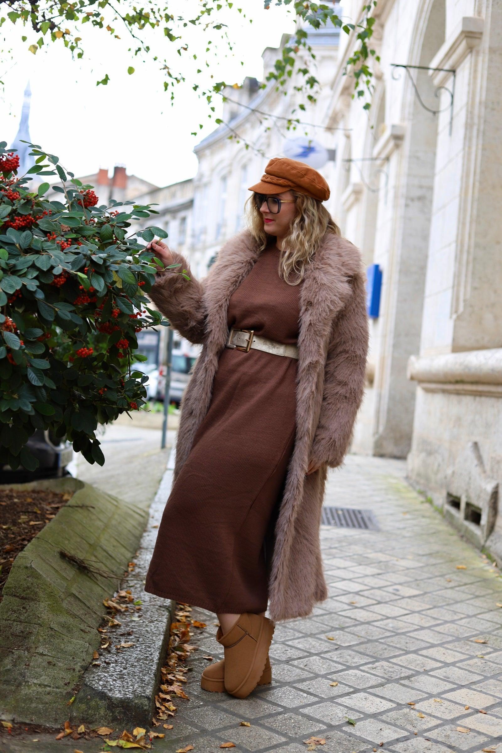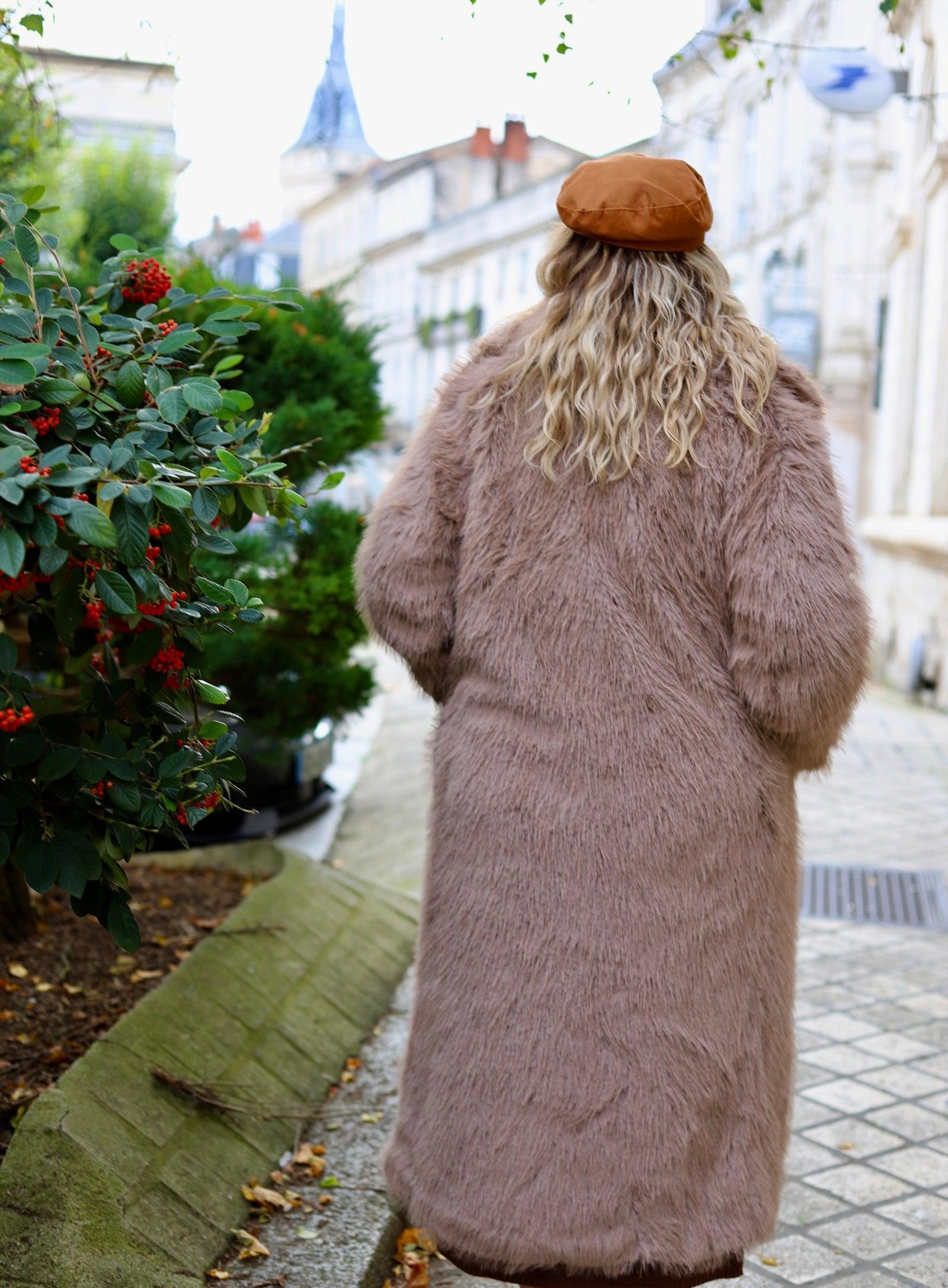 Manteau Long en Fausse Fourrure Taupe – Élégance et Confort