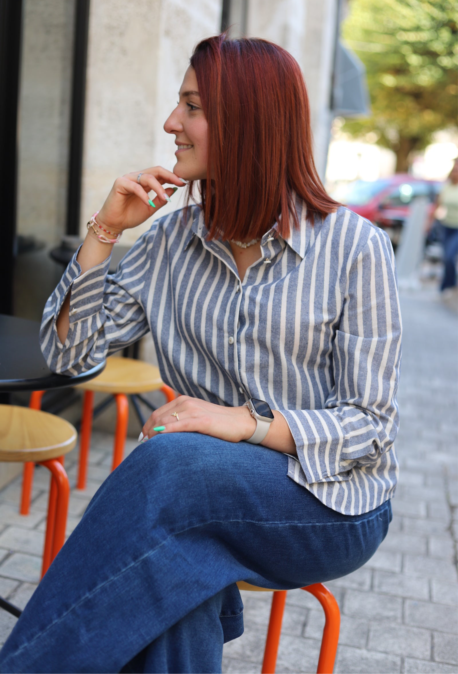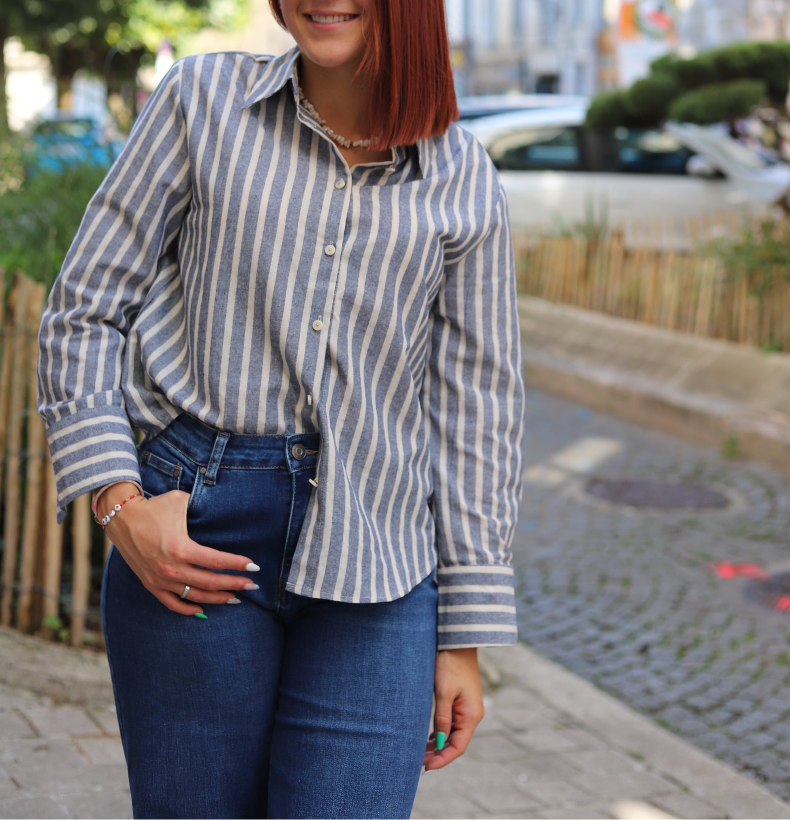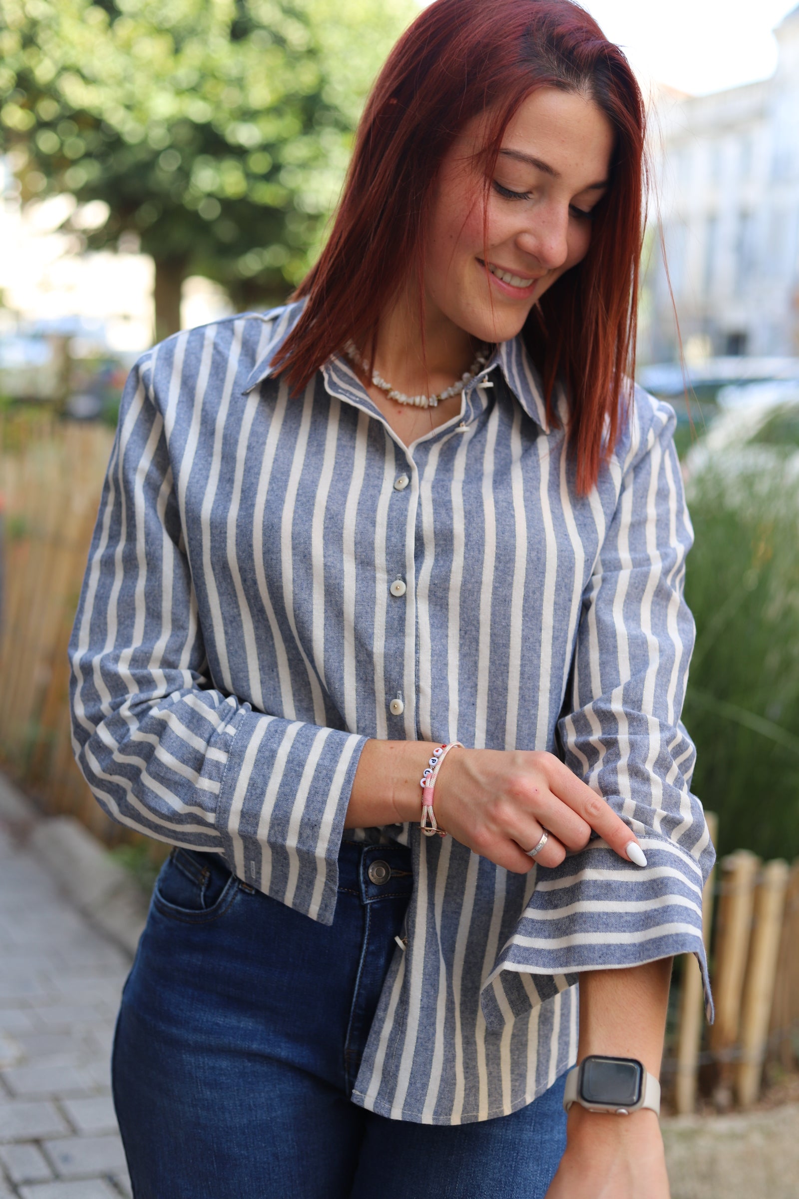 Craquez pour cette chemise femme rayée bleu et blanc, un indispensable du dressing féminin. Avec sa coupe droite et ses manches longues, elle allie confort et élégance au quotidien.