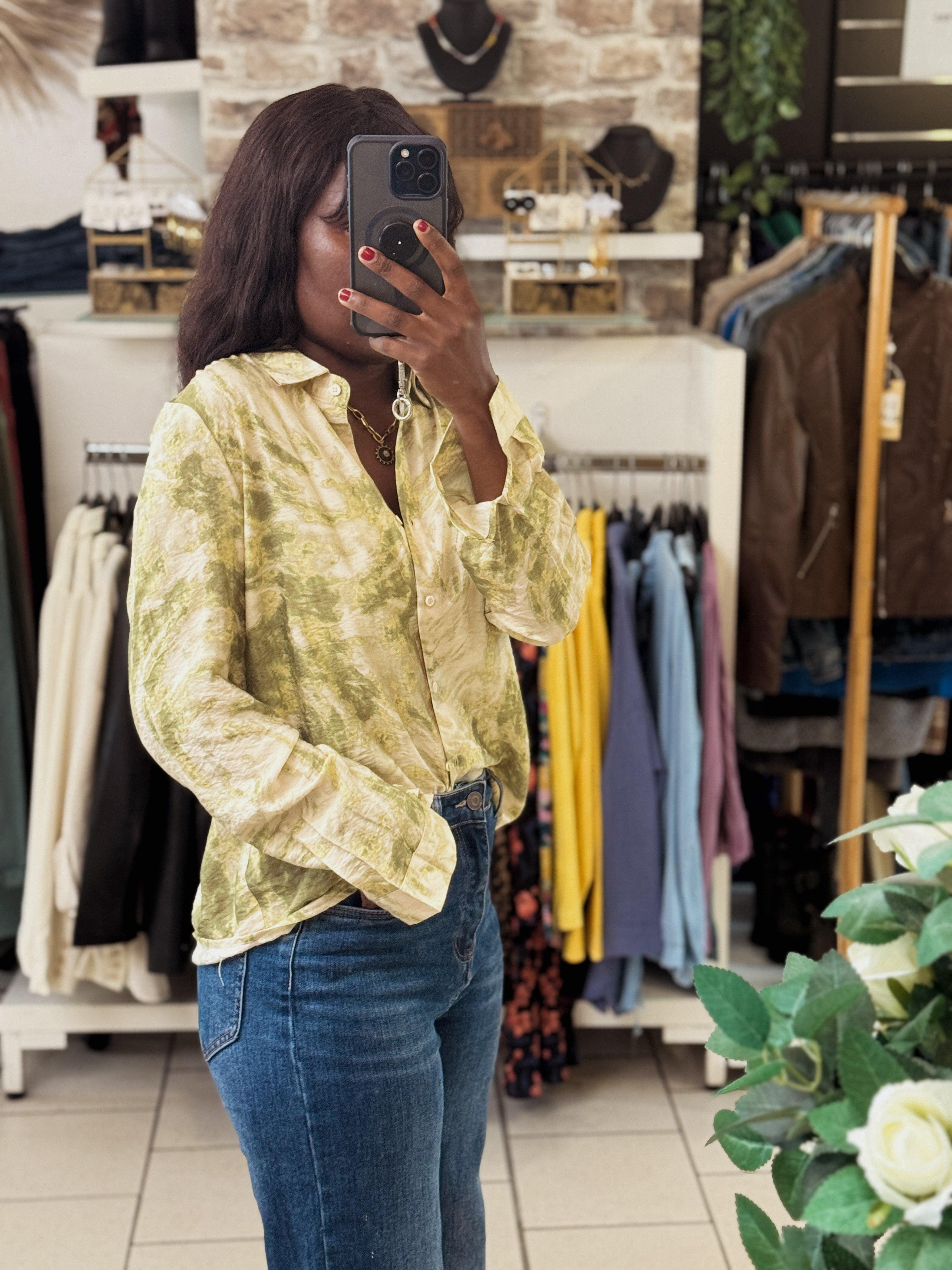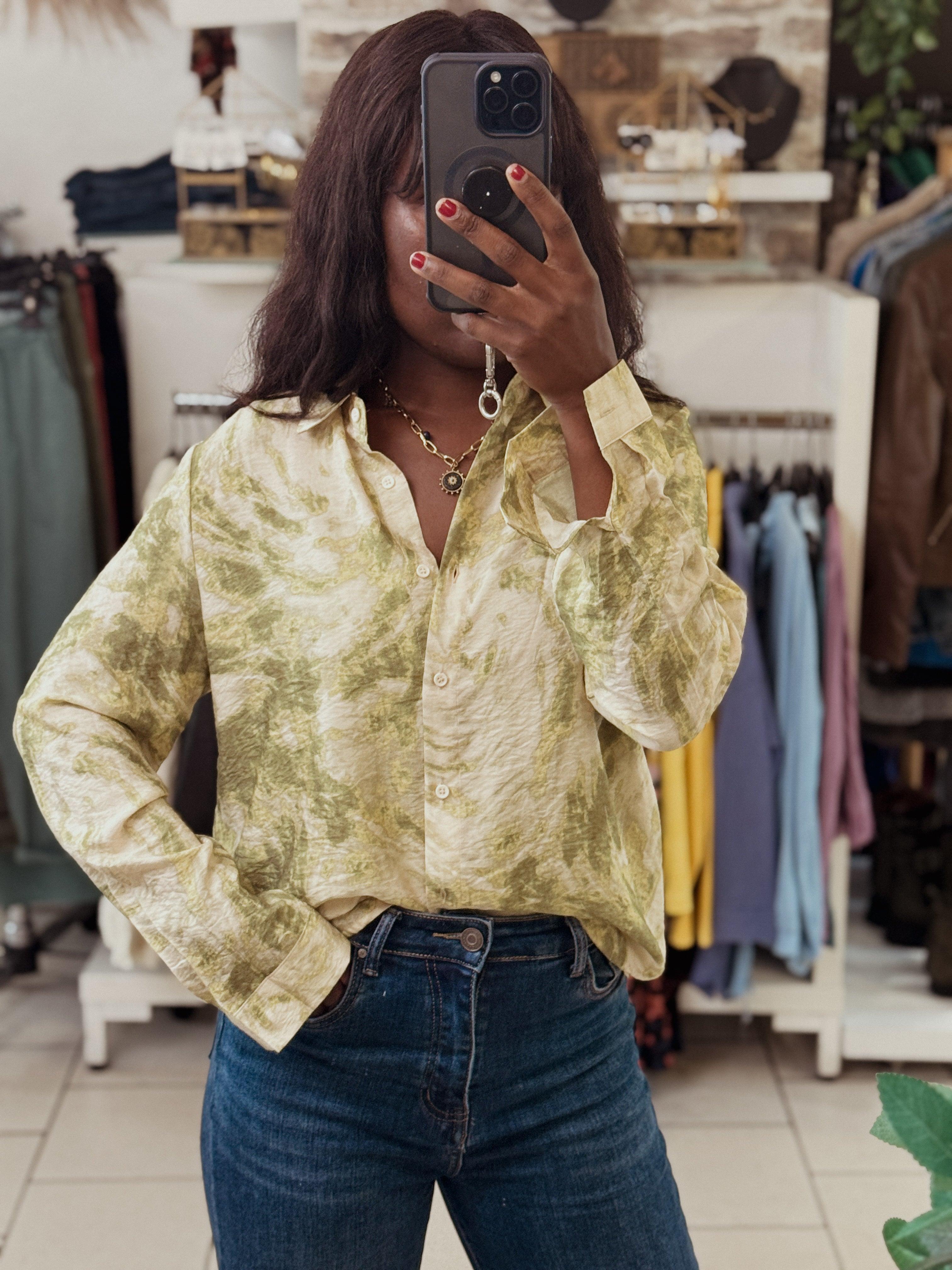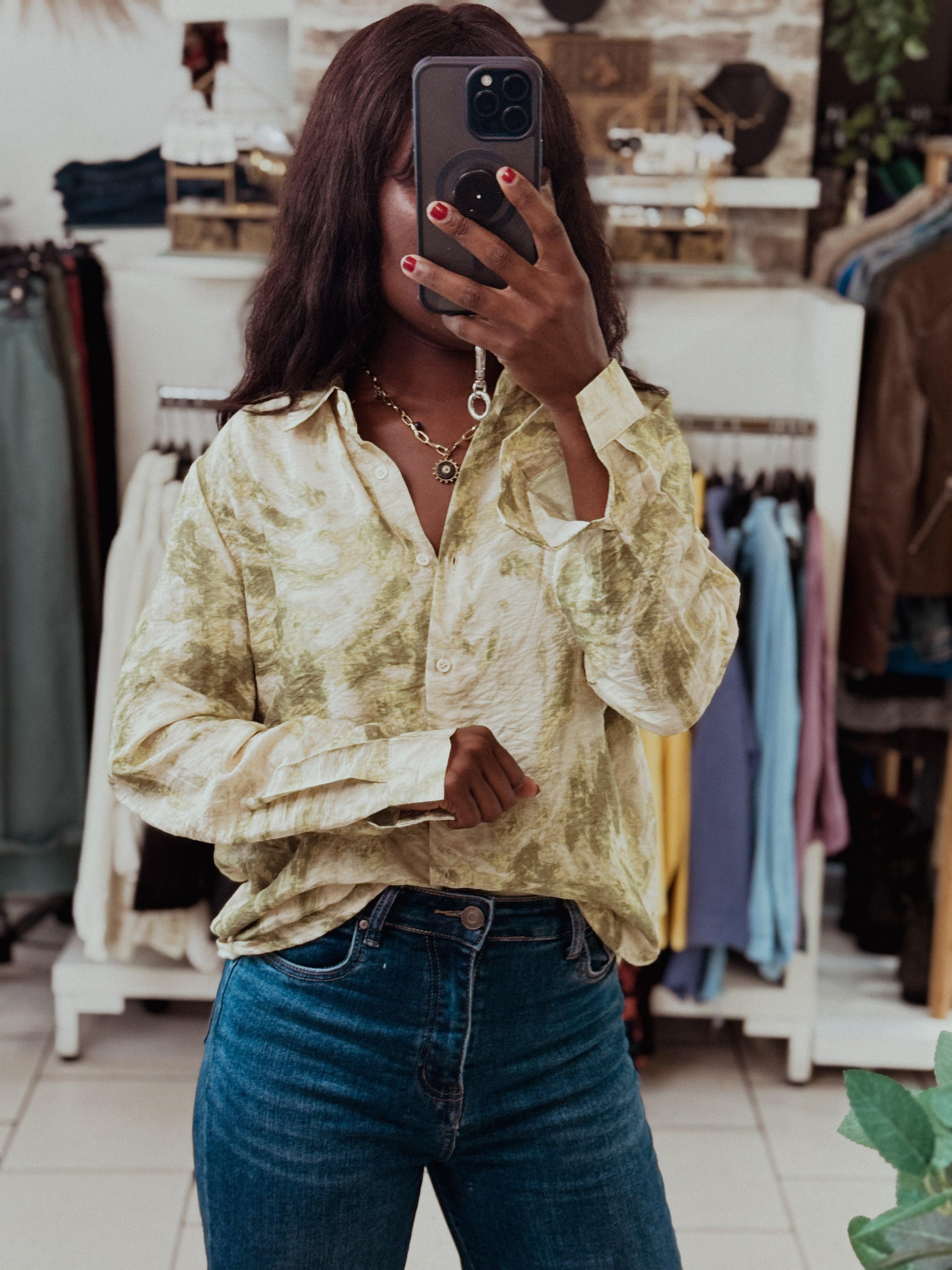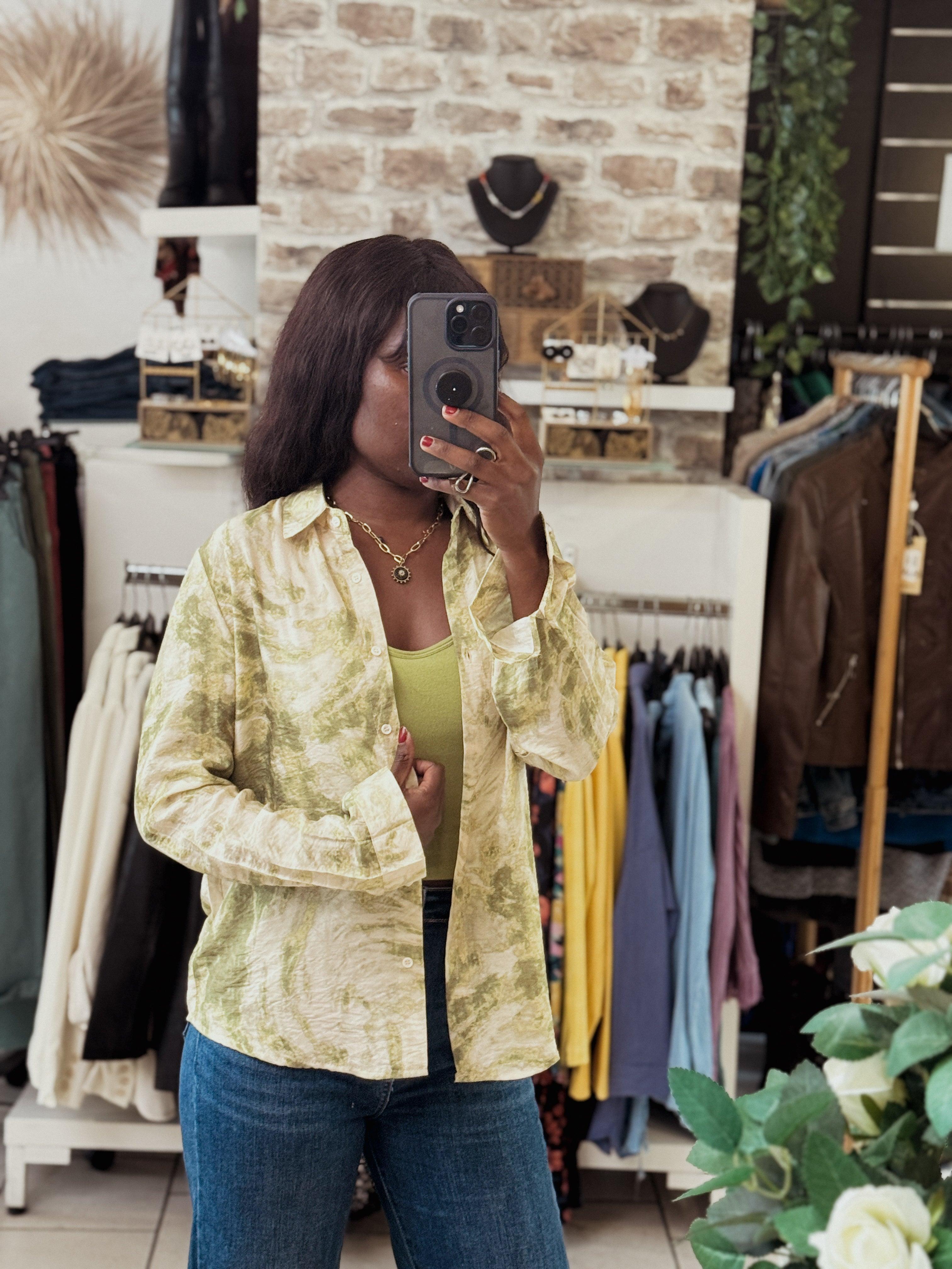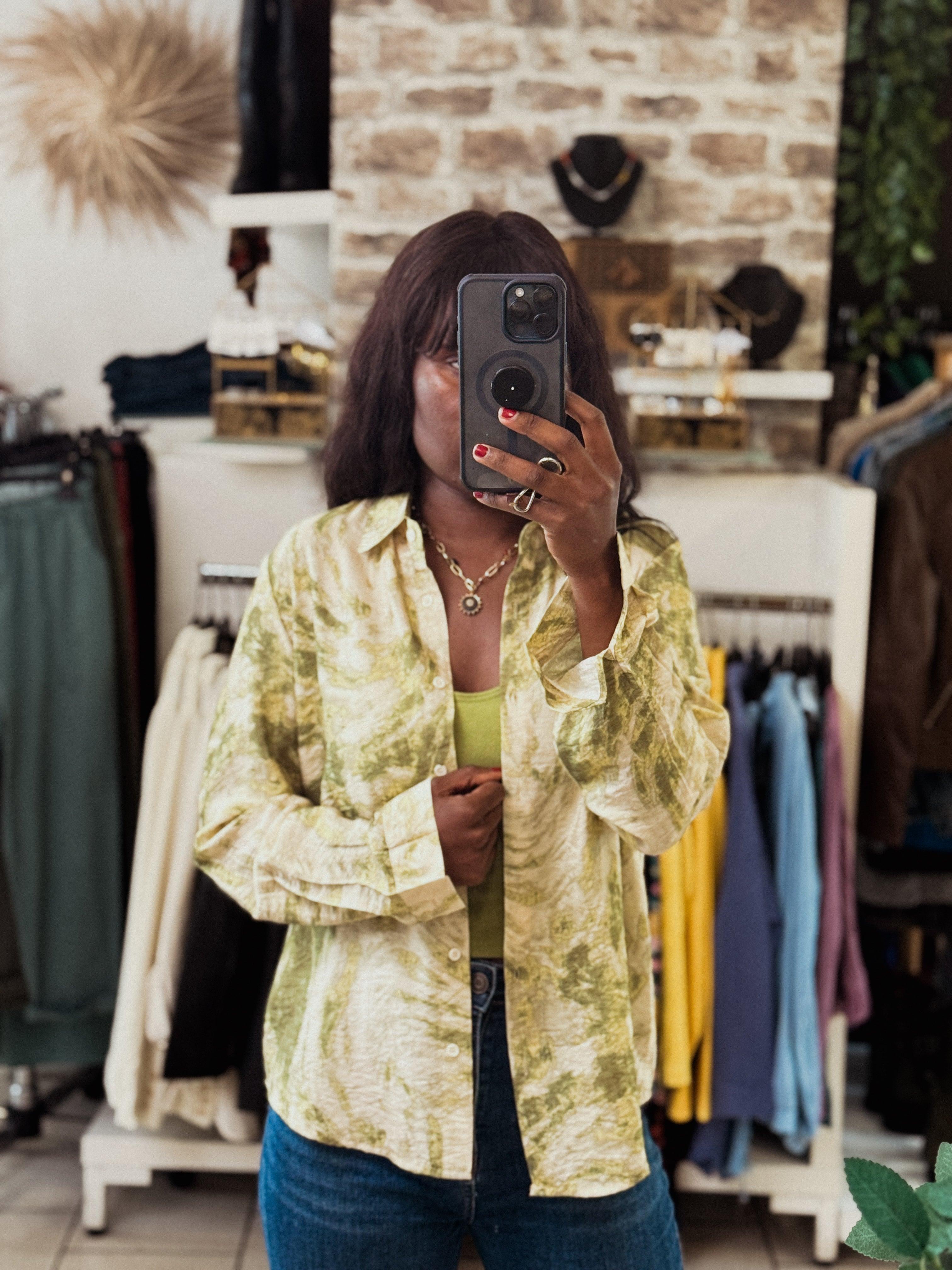 Notre modèle mesure 1m64 et porte une taille S (équivalent à un 36). Cette chemise est disponible en tailles S, M et L pour s’adapter à toutes les morphologies.