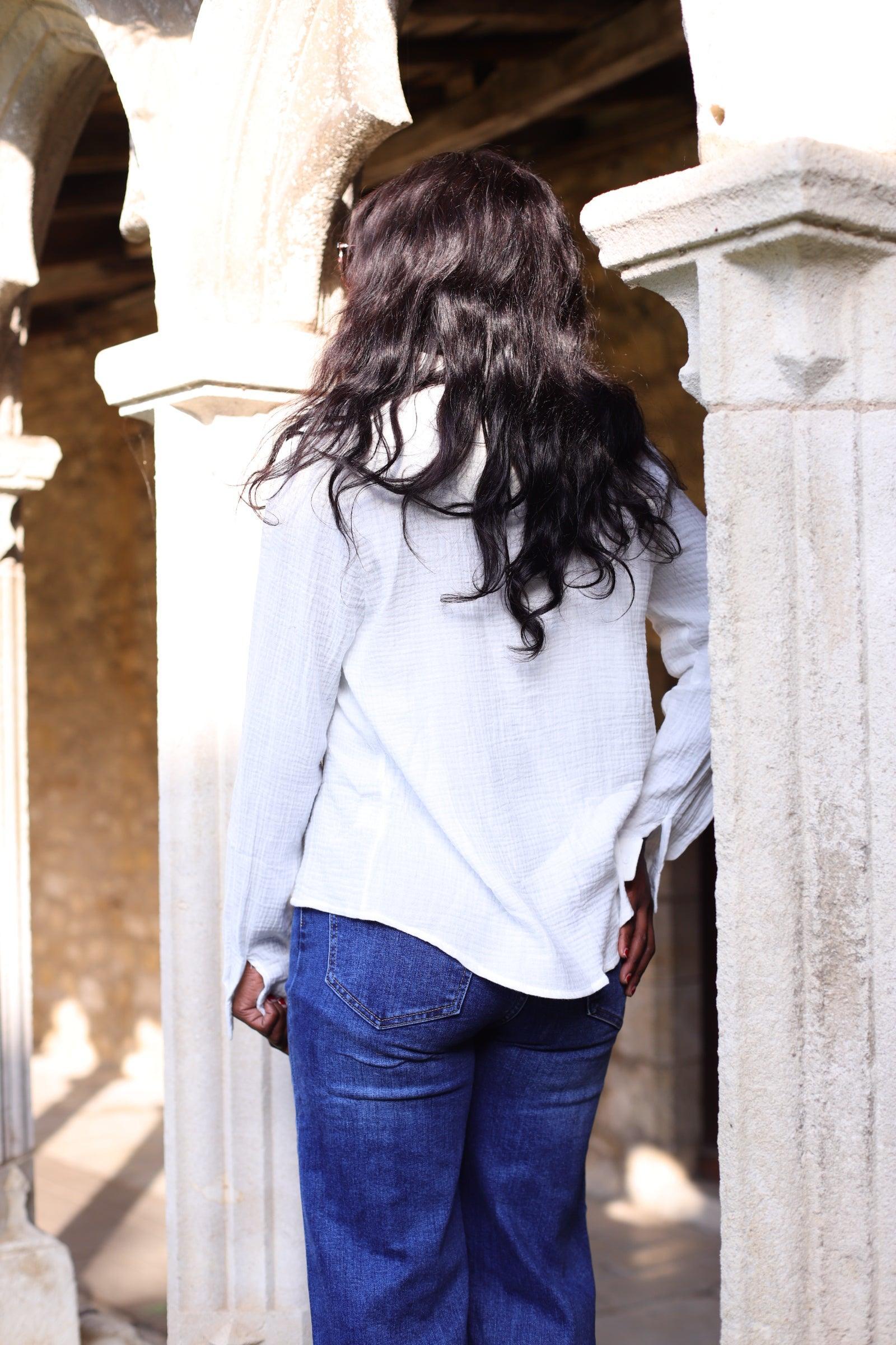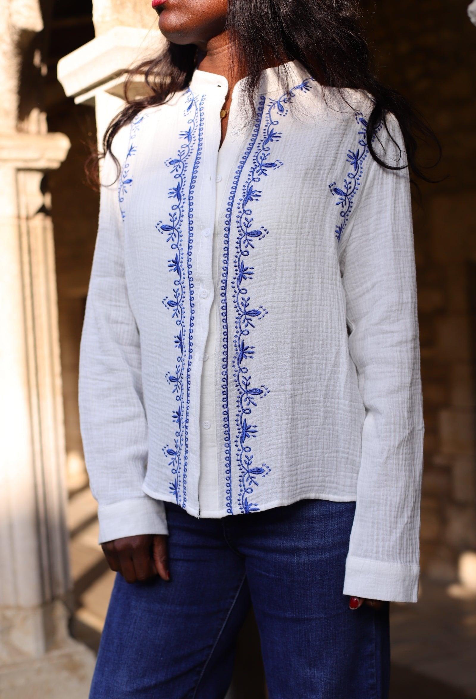 Complétez votre garde-robe avec ce magnifique chemisier blanc brodé en coton, parfait pour un look à la fois chic et décontracté. Conçu pour être léger et confortable, ce chemisier est idéal pour toutes les saisons.