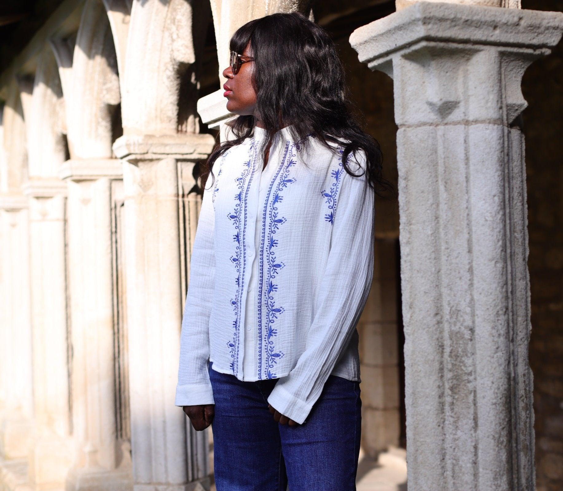 - Design : Détails brodés en bleu qui ajoutent une touche bohème chic.