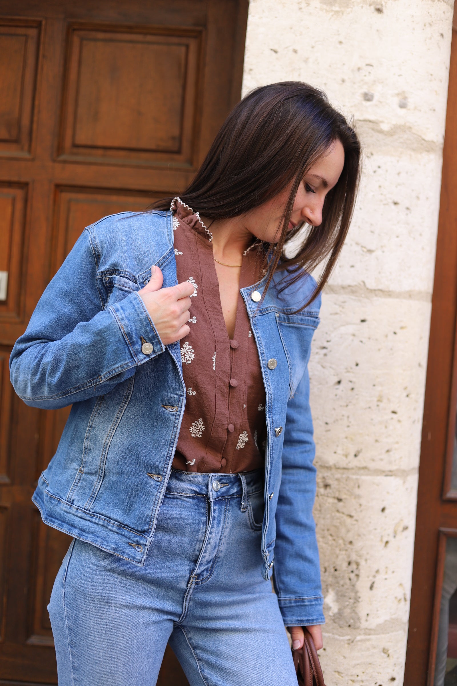 Veste en Jean Col Rond – Stretch & Intemporelle