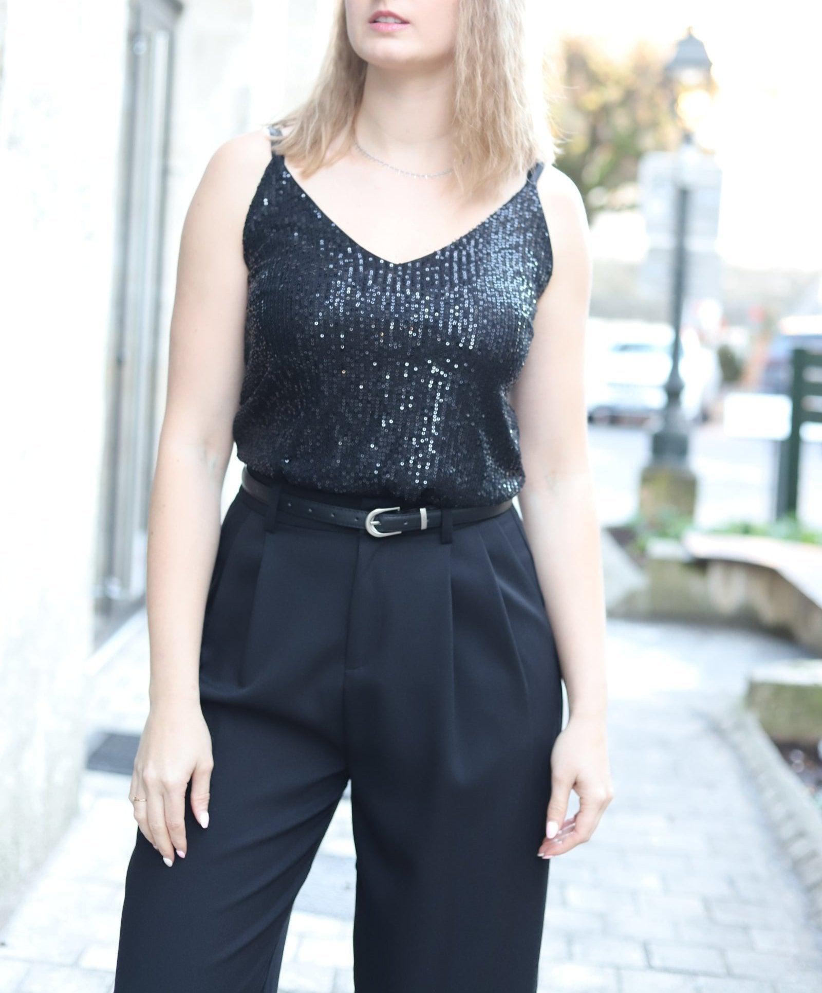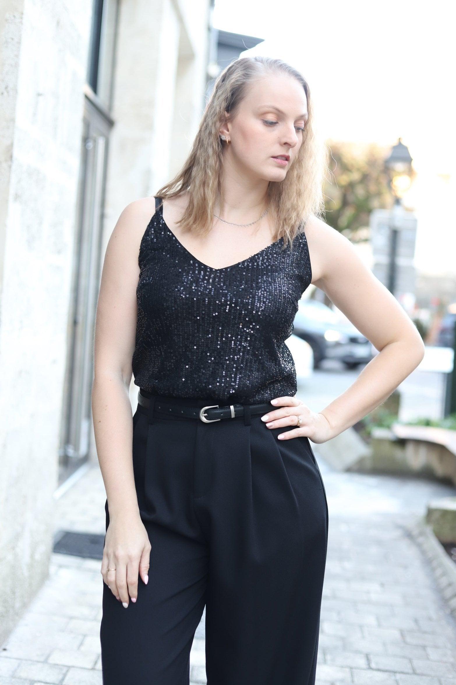 Ajoutez une touche de glamour à vos tenues avec ce débardeur à sequins scintillants, parfait pour briller lors de vos soirées ou événements festifs. Conçu en 100% polyester, il allie confort et élégance avec sa coupe ajustée et ses bretelles réglables qui s’adaptent parfaitement à votre morphologie. Idéal pour les tenues de fête, il sublimera votre silhouette tout en captant la lumière grâce à ses paillettes délicatement cousues.