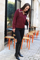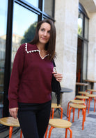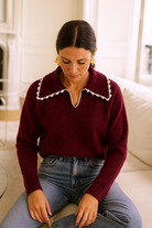 Pull bordeaux femme col à revers – Élégance féminine & confort
