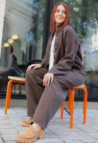 Sa coupe droite légèrement oversize lui donne une allure moderne, tandis que ses poches plaquées ajoutent une touche pratique. Le coloris marron profond s’accorde aisément aux teintes camel, crème, noir ou même imprimés audacieux pour un contraste stylé.